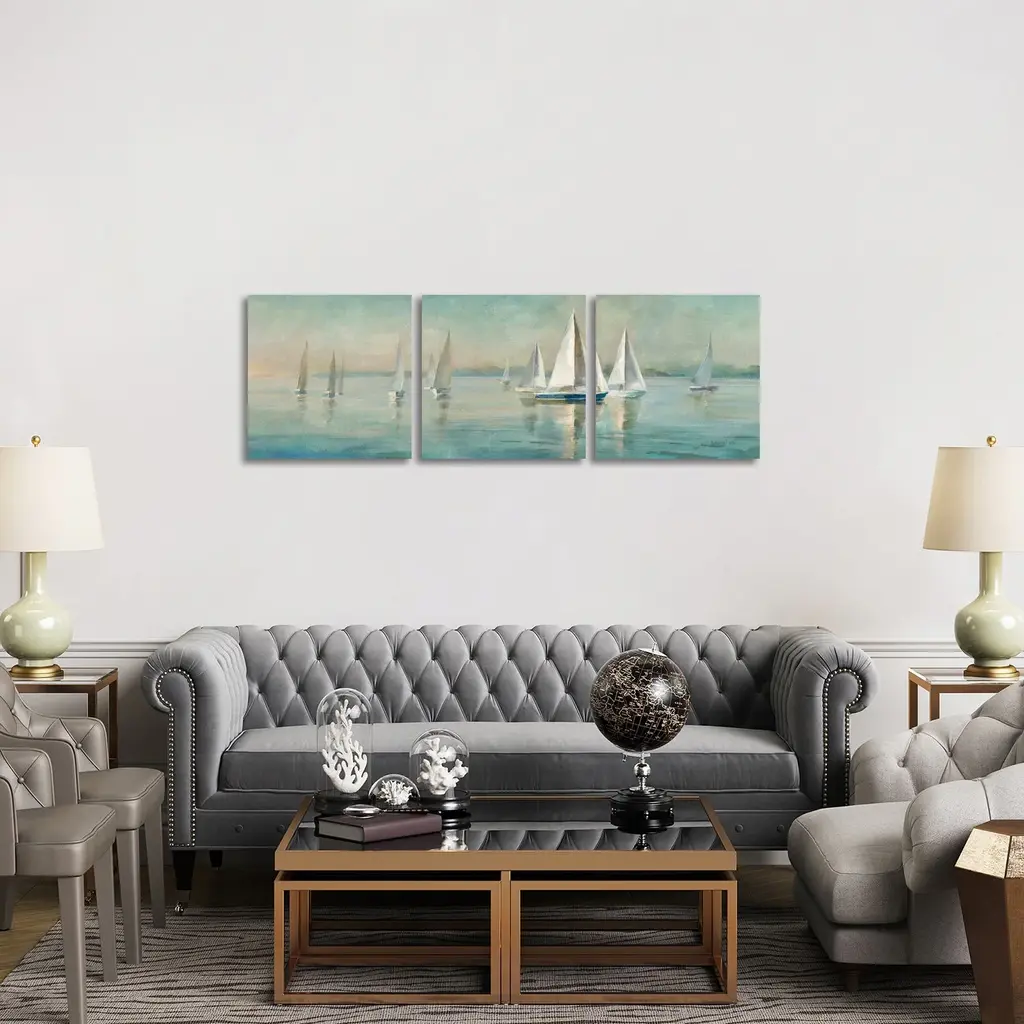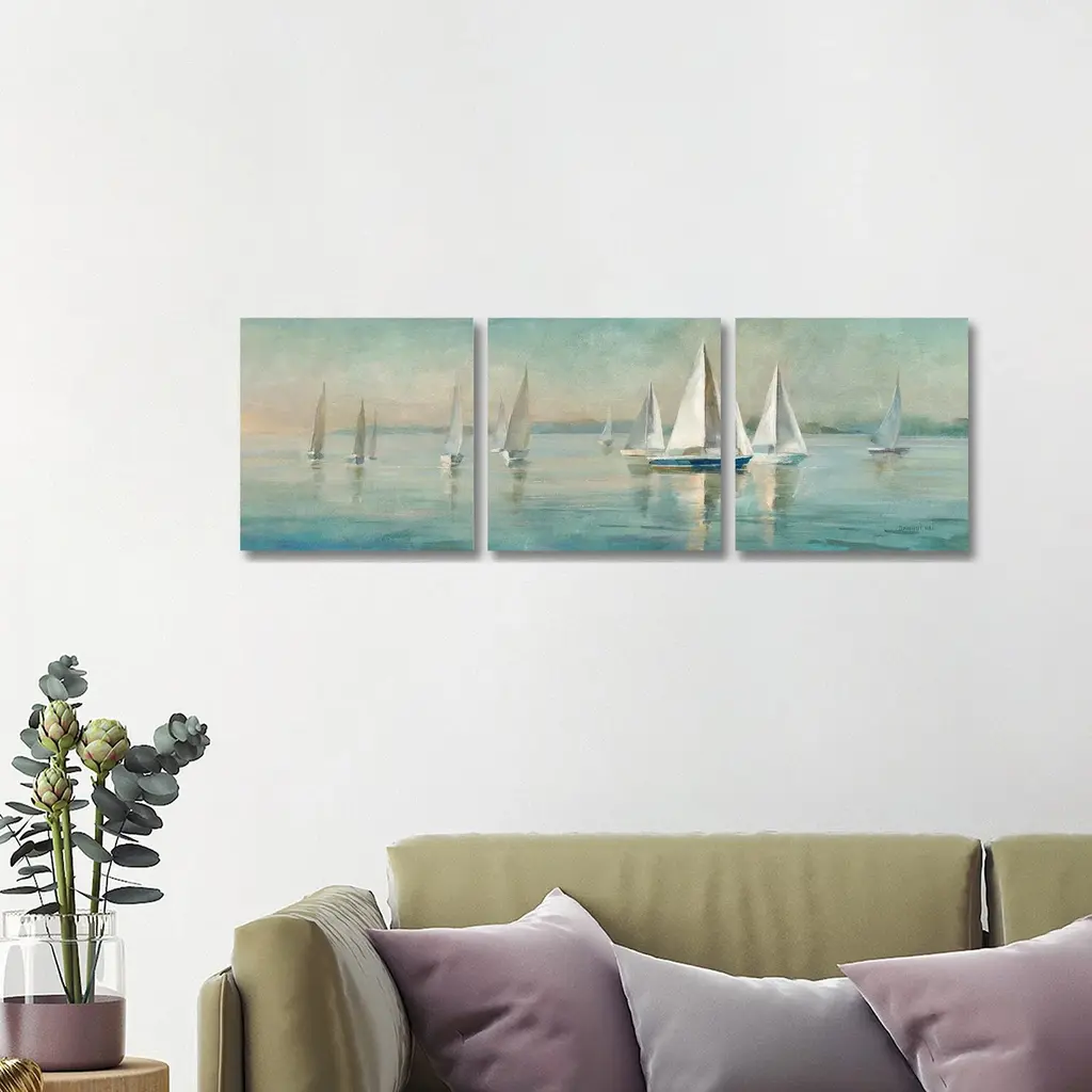 Icanvas "Sailboats At Sunrise" By Danhui Nai 3-Piece Canvas Wall Art Set - 12x36x1.5