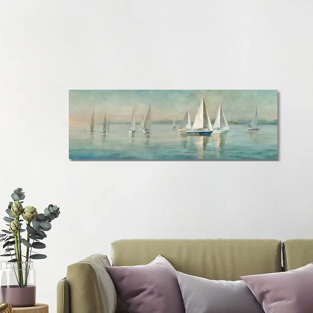 Icanvas "Sailboats At Sunrise" By Danhui Nai Canvas Print - 16x48x1.5