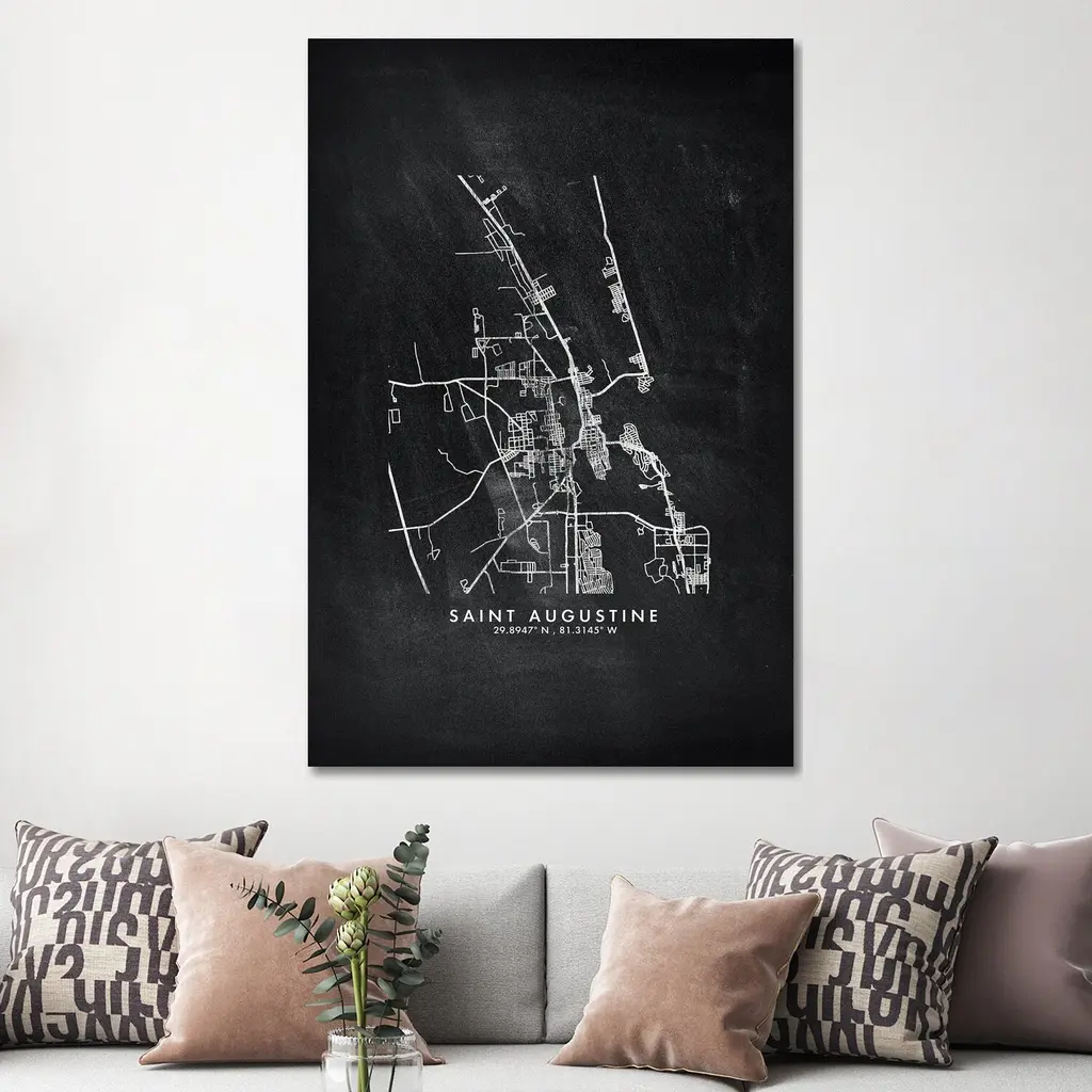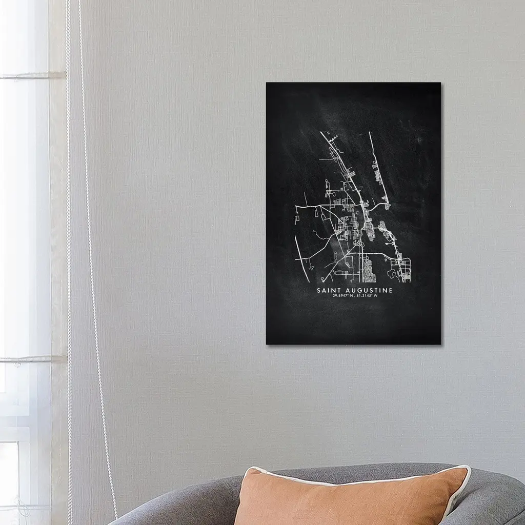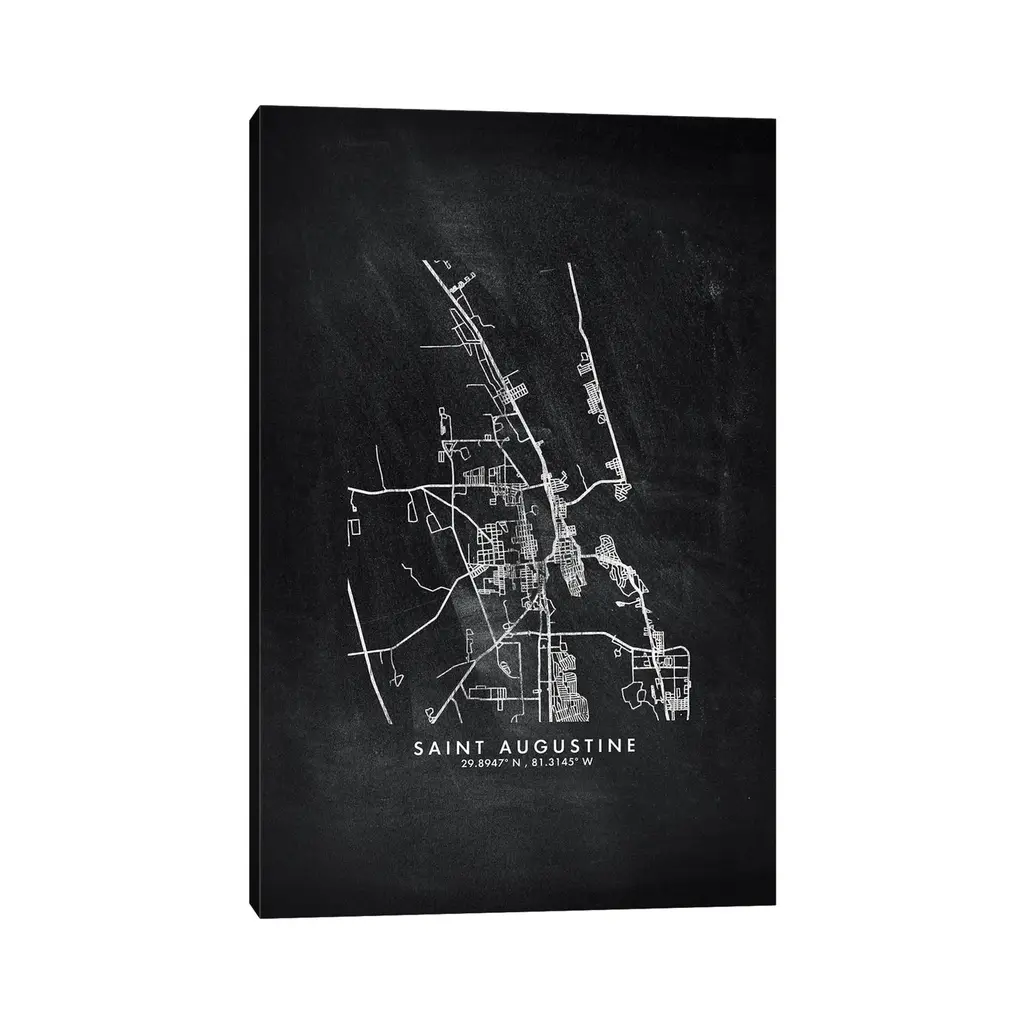 Icanvas "Saint Augustine City Map Chalkboard Style" By Walldecoraddict Canvas Print - 26x18x1.5