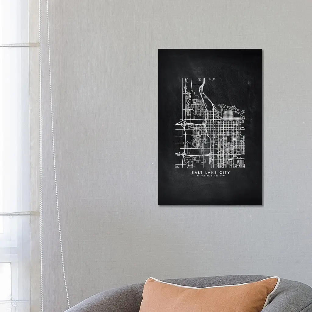 Icanvas "Salt Lake City Map Chalkboard Style" By Walldecoraddict Canvas Print - 12x8x0.75