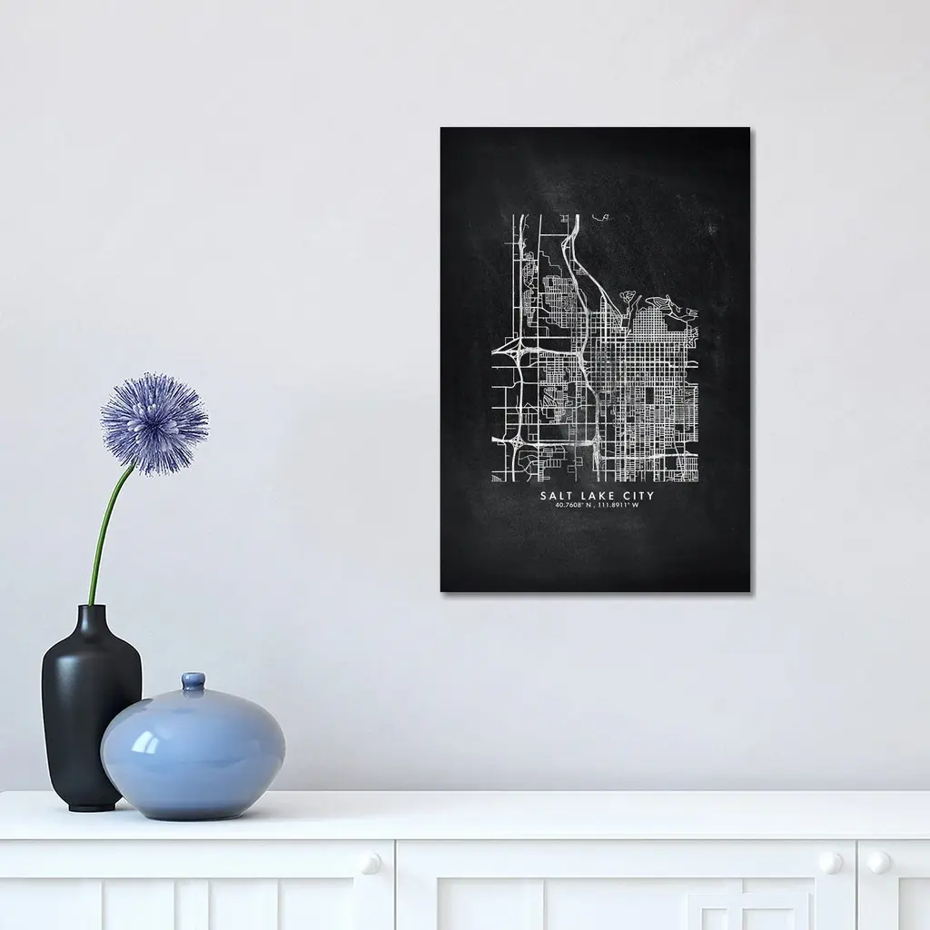 Icanvas "Salt Lake City Map Chalkboard Style" By Walldecoraddict Canvas Print - 40x26x1.5