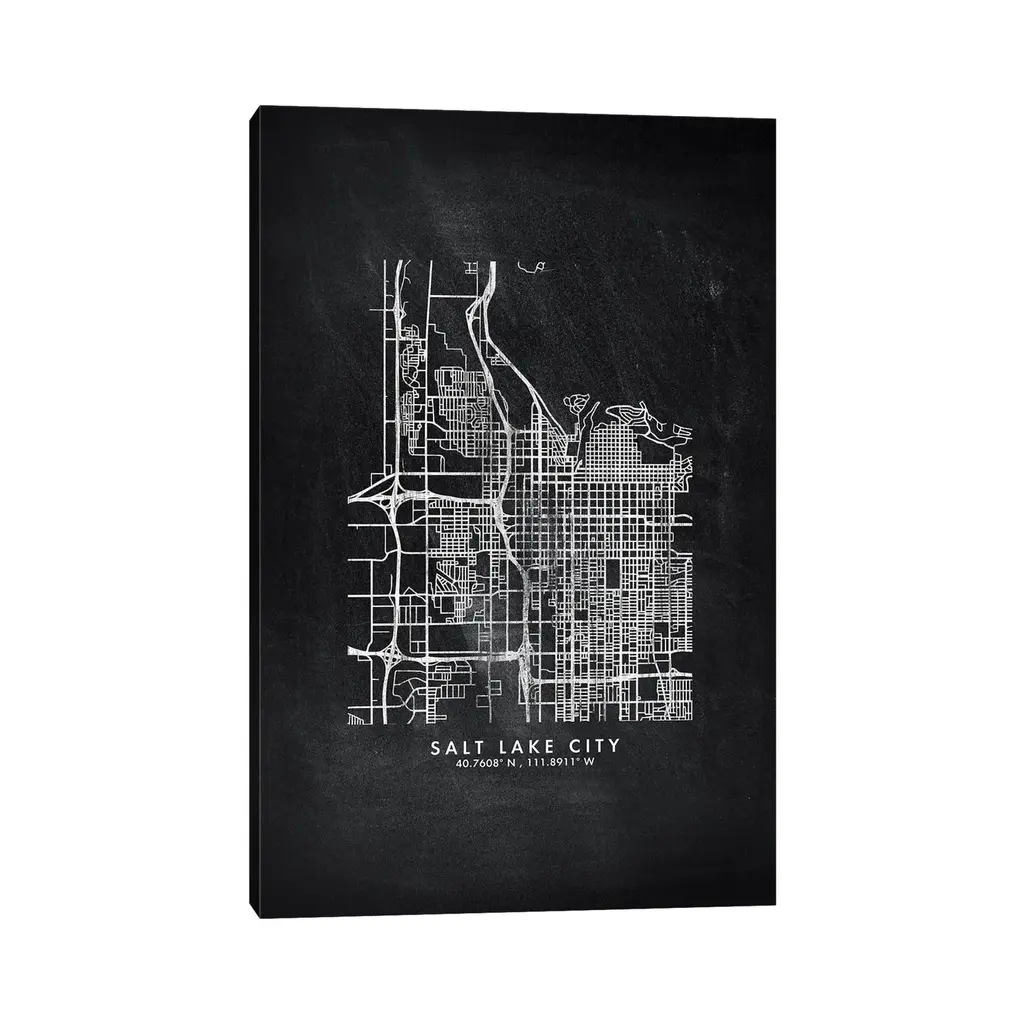 Icanvas "Salt Lake City Map Chalkboard Style" By Walldecoraddict Canvas Print - 48x32x1.5