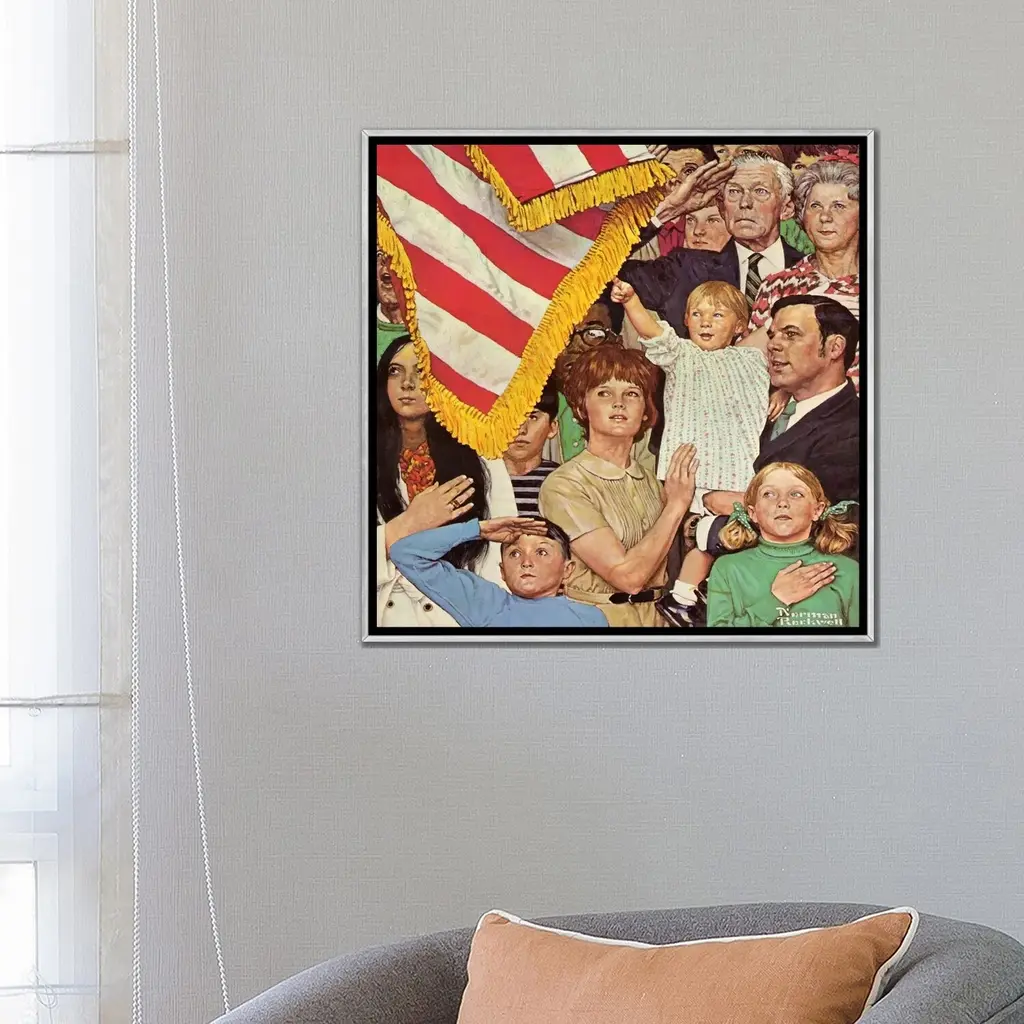 Icanvas "Salute The Flag" By Norman Rockwell Framed - Charcoal - 18x18