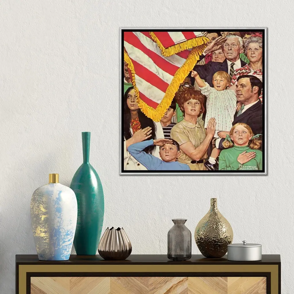 Icanvas "Salute The Flag" By Norman Rockwell Framed - Charcoal - 26x26