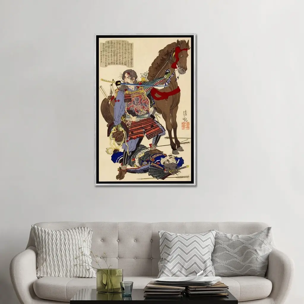 Icanvas "Samurai & Horse" By Unknown Artist Framed - Charcoal - 48x32