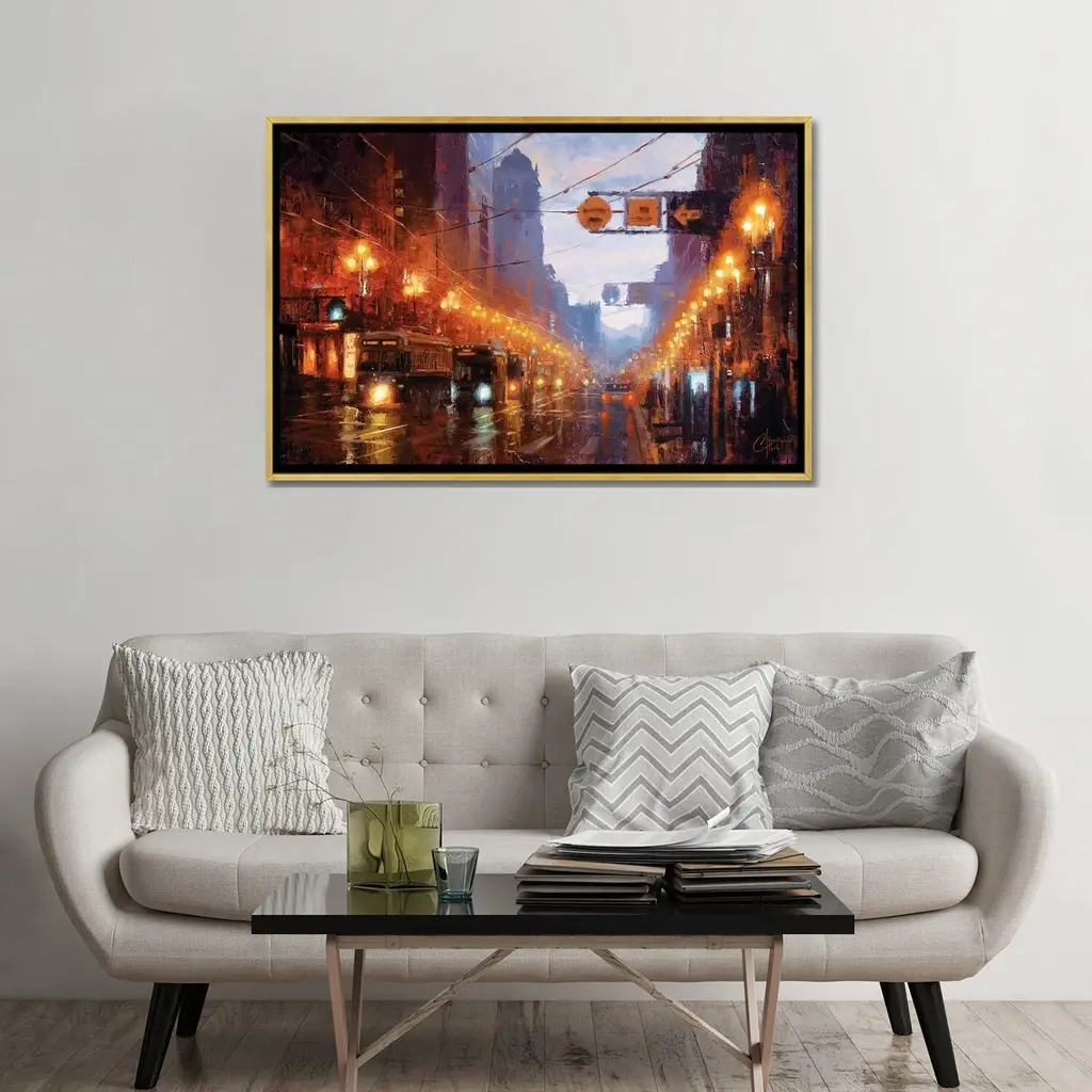 Add a touch of contemporary style to your space with the iCanvas "San Francisco At Dusk" by Christopher Clark Framed Canvas Print. Crafted in the USA with artist-grade canvas, this Giclee artwork offers the texture and feel of fine-art paintings. The canvas is professionally hand-stretched and stapled over North American pine-wood bars in Gallery Wrap style, creating a sleek and modern look. The print is fade-resistant and made with archival inks, ensuring vibrant colors that will last for years. The artwork comes mounted to a 2-inch thick, elegant hardwood frame, giving it a floating illusion. Elevate your home decor with this exceptional piece of art!Features: