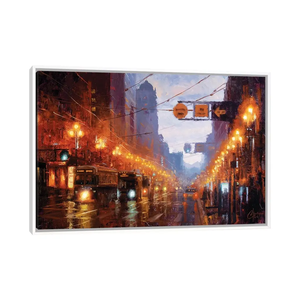 Add a touch of contemporary style to your space with the iCanvas "San Francisco At Dusk" by Christopher Clark Framed Canvas Print. Crafted in the USA with artist-grade canvas, this Giclee artwork offers the texture and feel of fine-art paintings. The canvas is professionally hand-stretched and stapled over North American pine-wood bars in Gallery Wrap style, creating a sleek and modern look. The print is fade-resistant and made with archival inks, ensuring vibrant colors that will last for years. The artwork comes mounted to a 2-inch thick, elegant hardwood frame, giving it a floating illusion. Elevate your home decor with this exceptional piece of art!Features: