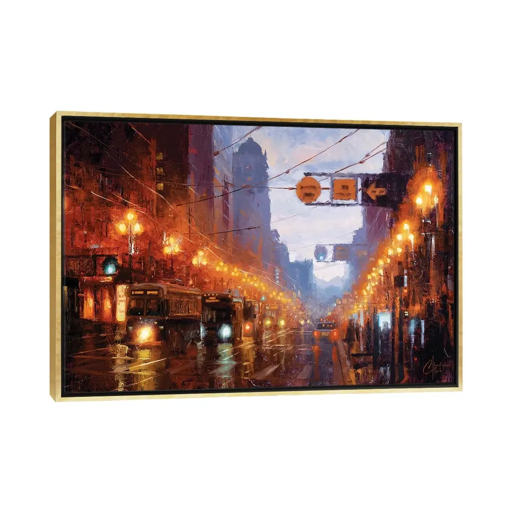 Add a touch of contemporary style to your space with the iCanvas "San Francisco At Dusk" by Christopher Clark Framed Canvas Print. Crafted in the USA with artist-grade canvas, this Giclee artwork offers the texture and feel of fine-art paintings. The canvas is professionally hand-stretched and stapled over North American pine-wood bars in Gallery Wrap style, creating a sleek and modern look. The print is fade-resistant and made with archival inks, ensuring vibrant colors that will last for years. The artwork comes mounted to a 2-inch thick, elegant hardwood frame, giving it a floating illusion. Elevate your home decor with this exceptional piece of art!Features: