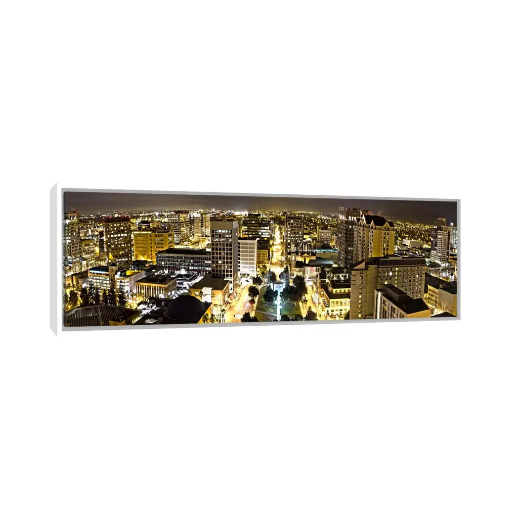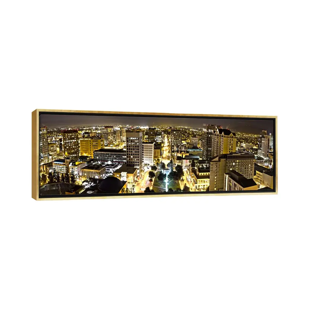 Icanvas "San Jose Panoramic Skyline Cityscape (Night View)" By Unknown Artist Framed Canvas Print - Gold - 12x36