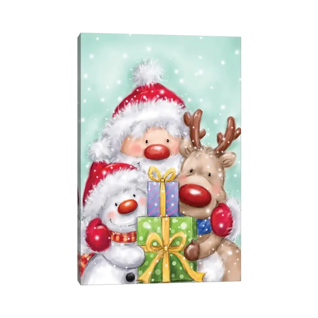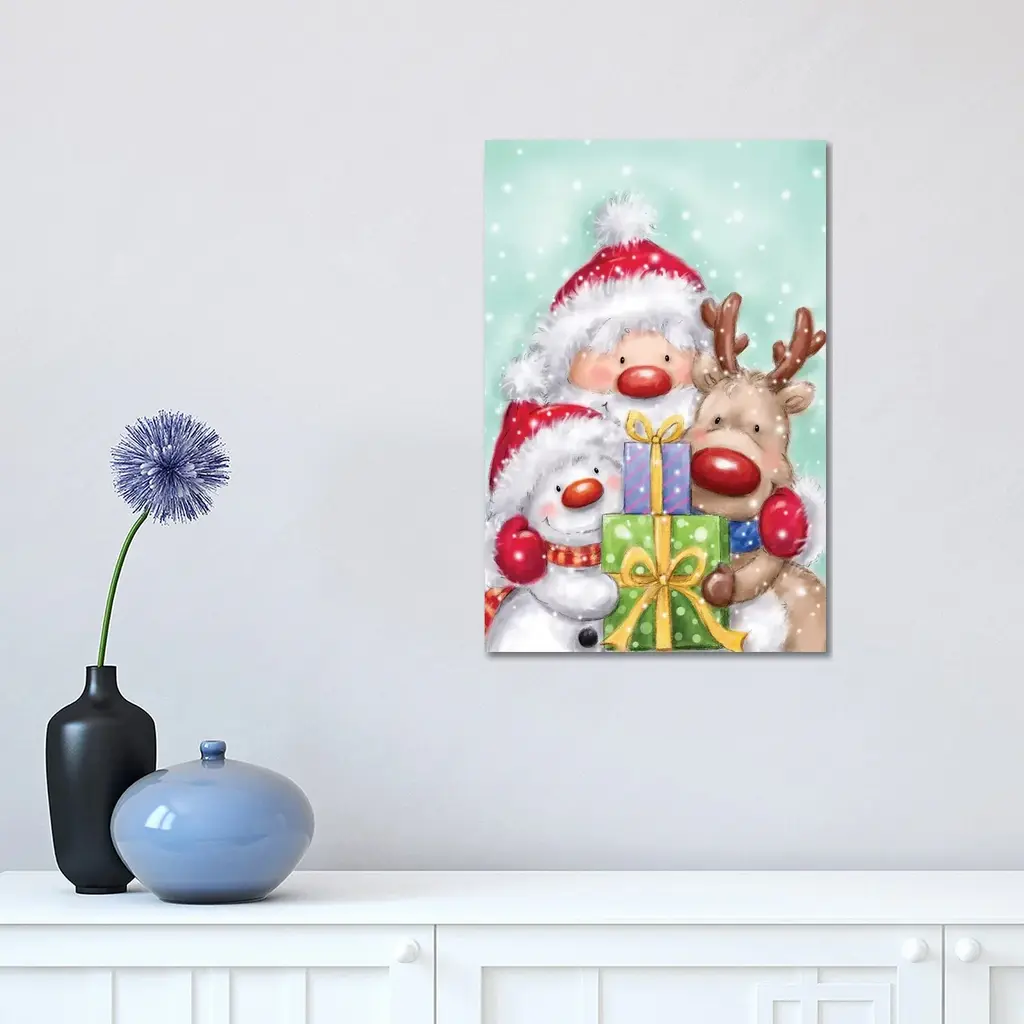 Icanvas "Santa, Reindeer And Snowman" By Makiko Canvas Print - 26x18x1.5