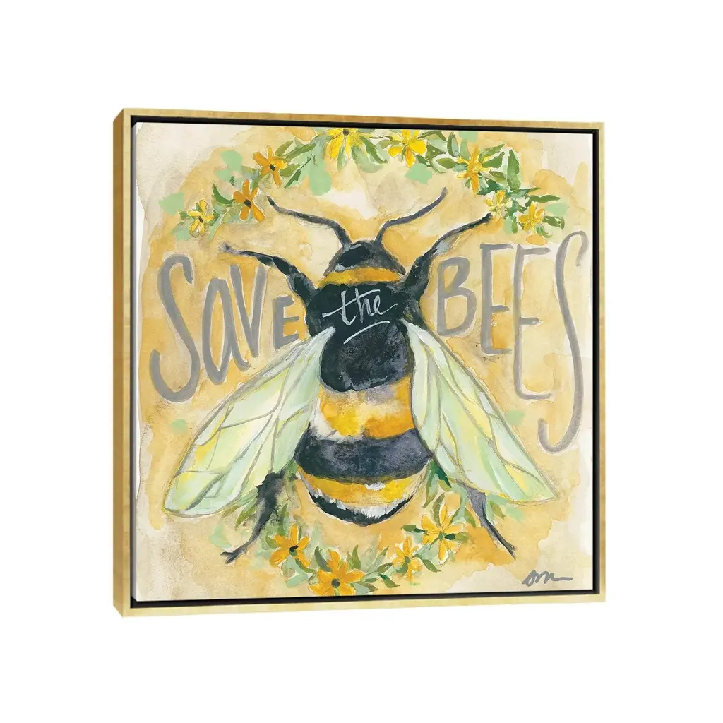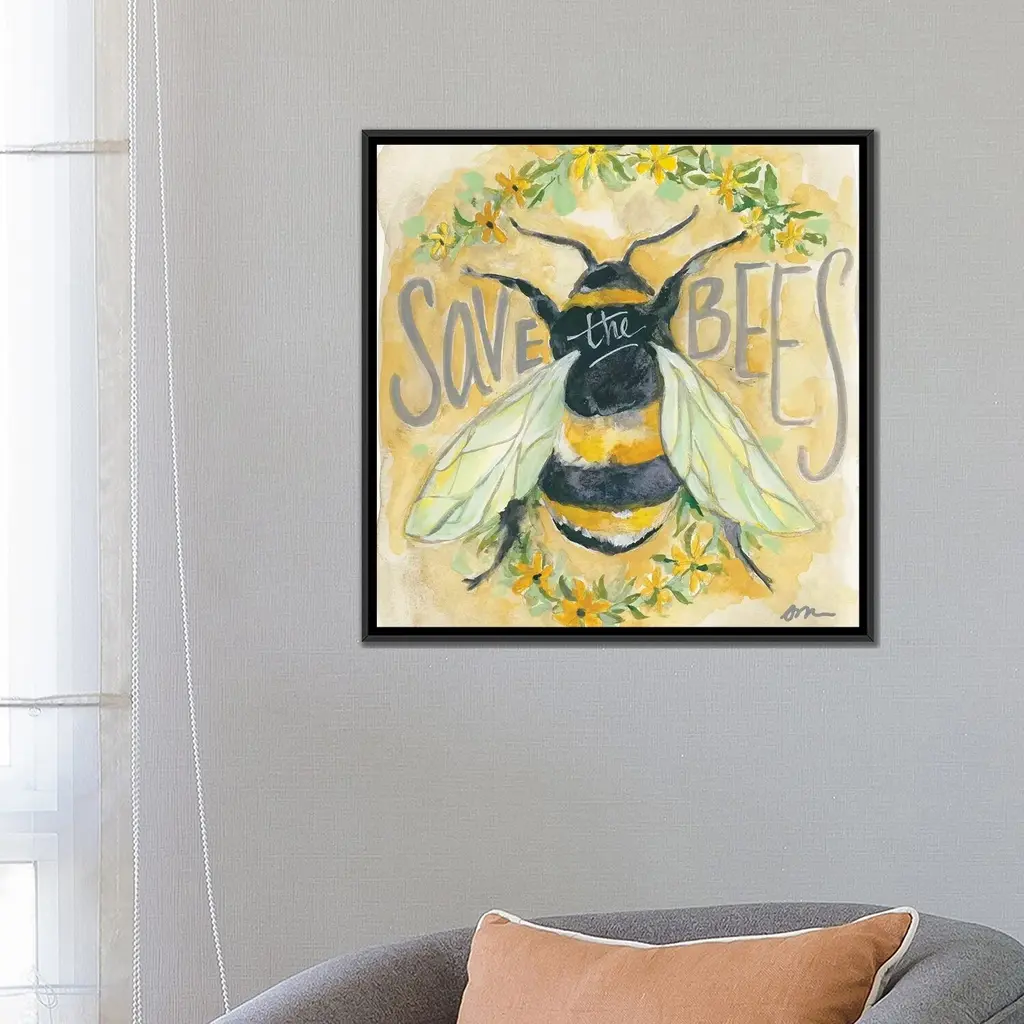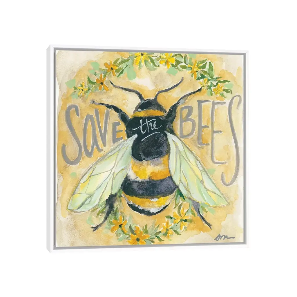 Icanvas "Save The Bees" By Jessica Mingo Framed Canvas Print - Black - 12x12