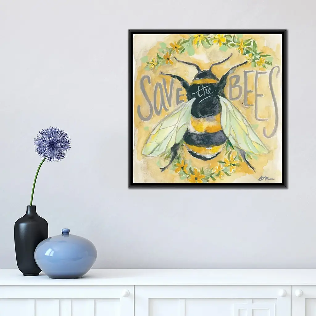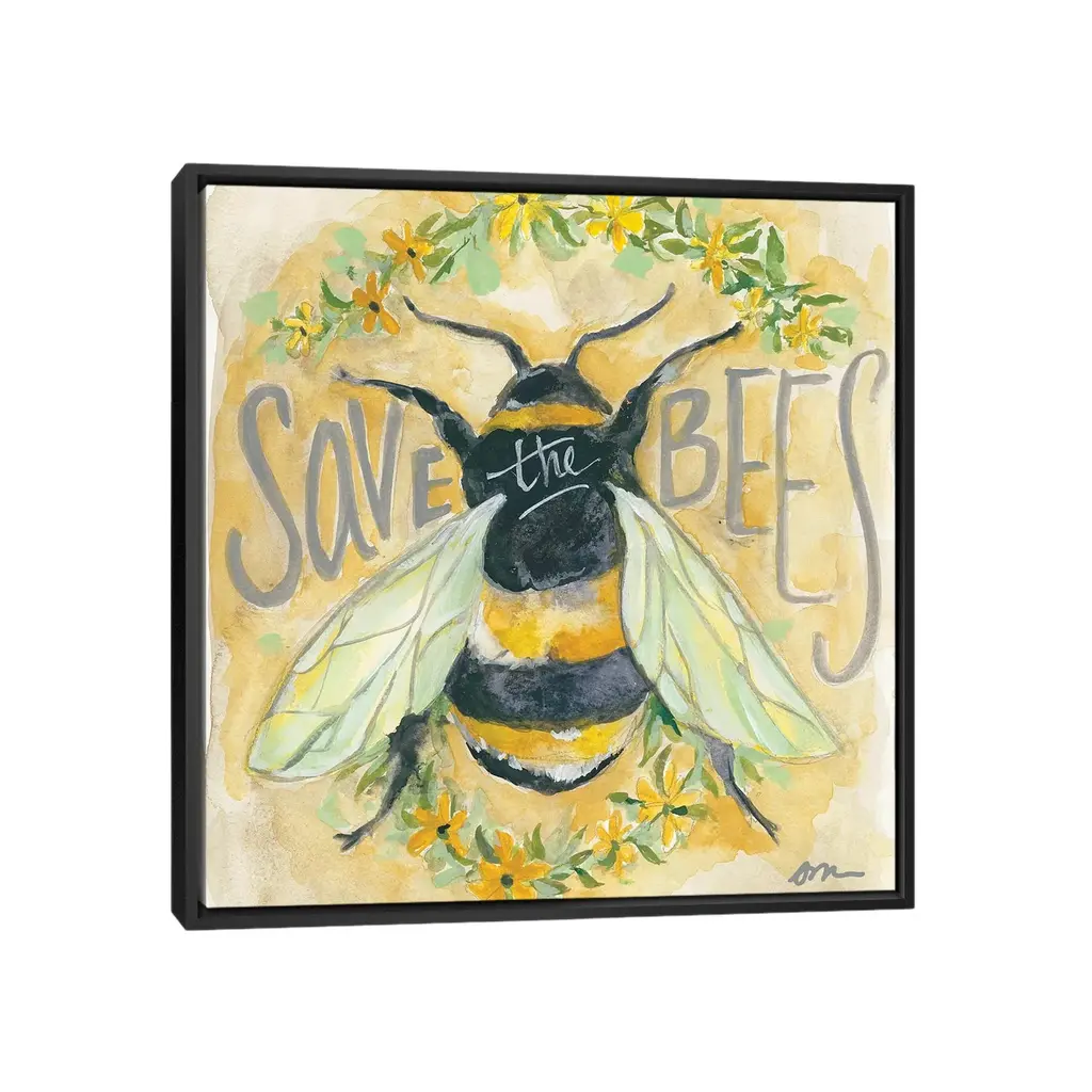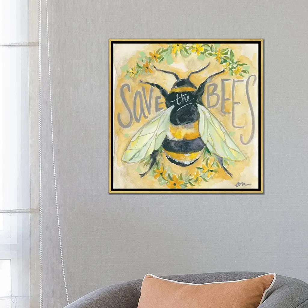 Icanvas "Save The Bees" By Jessica Mingo Framed Canvas Print - Gold - 26x26