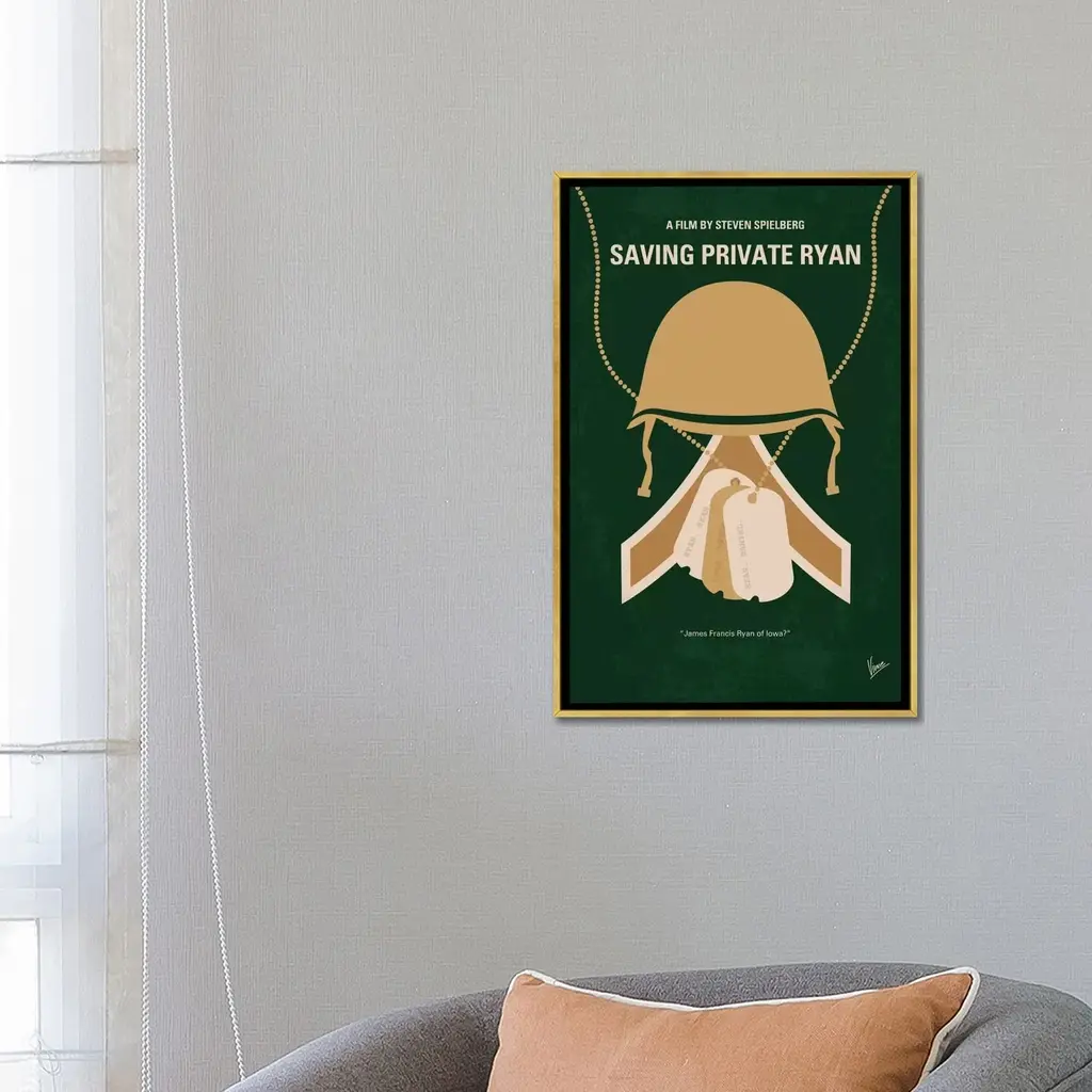 Icanvas "Saving Private Ryan Minimal Movie Poster" By Chungkong Framed Canvas Print - White - 26x18