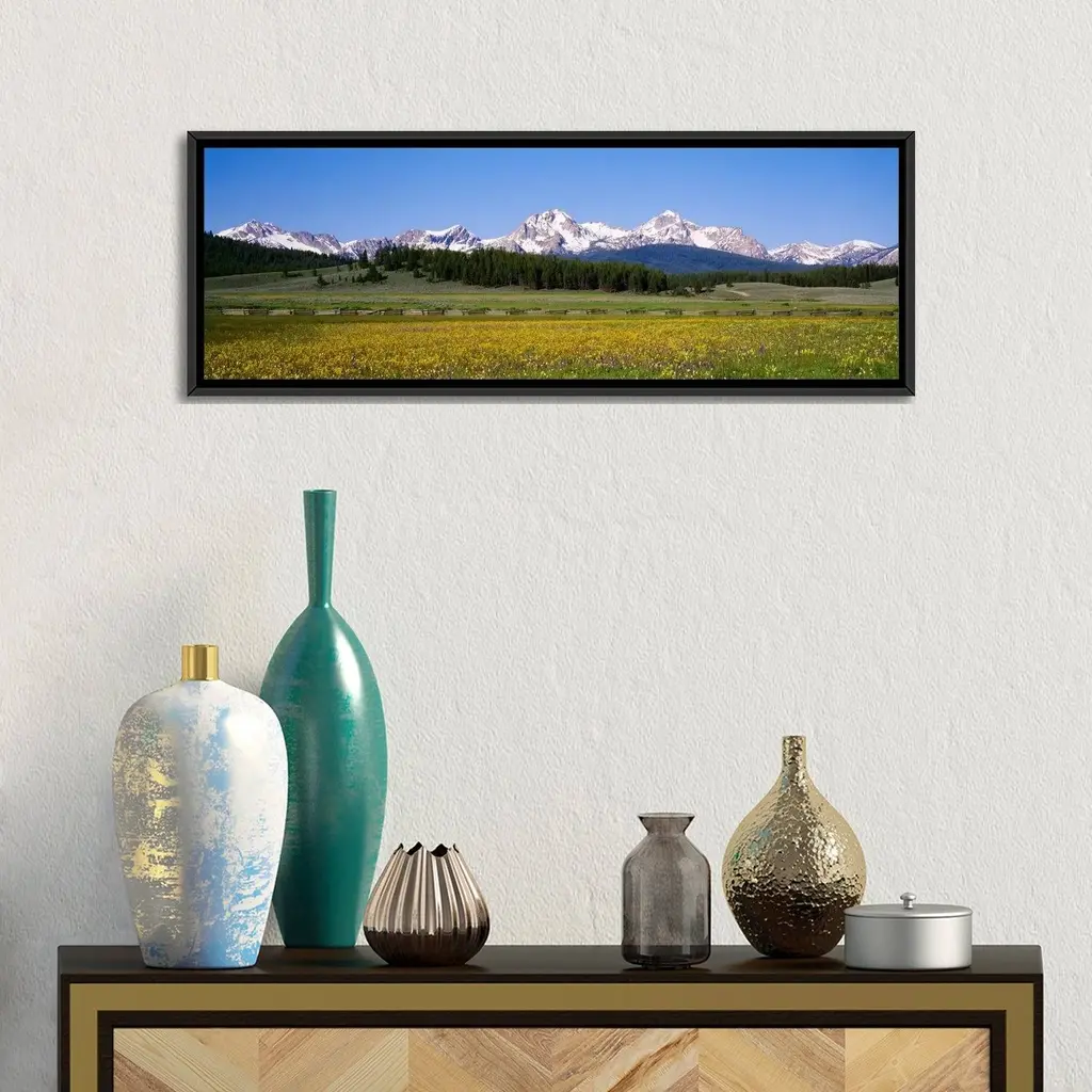 Icanvas "Sawtooth Range, Sawtooth National Recreation Area, Idaho, Usa" By Panoramic Images Framed Canvas Print - 12x36 - Black