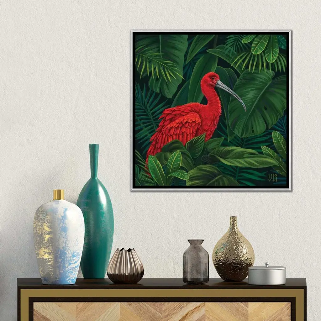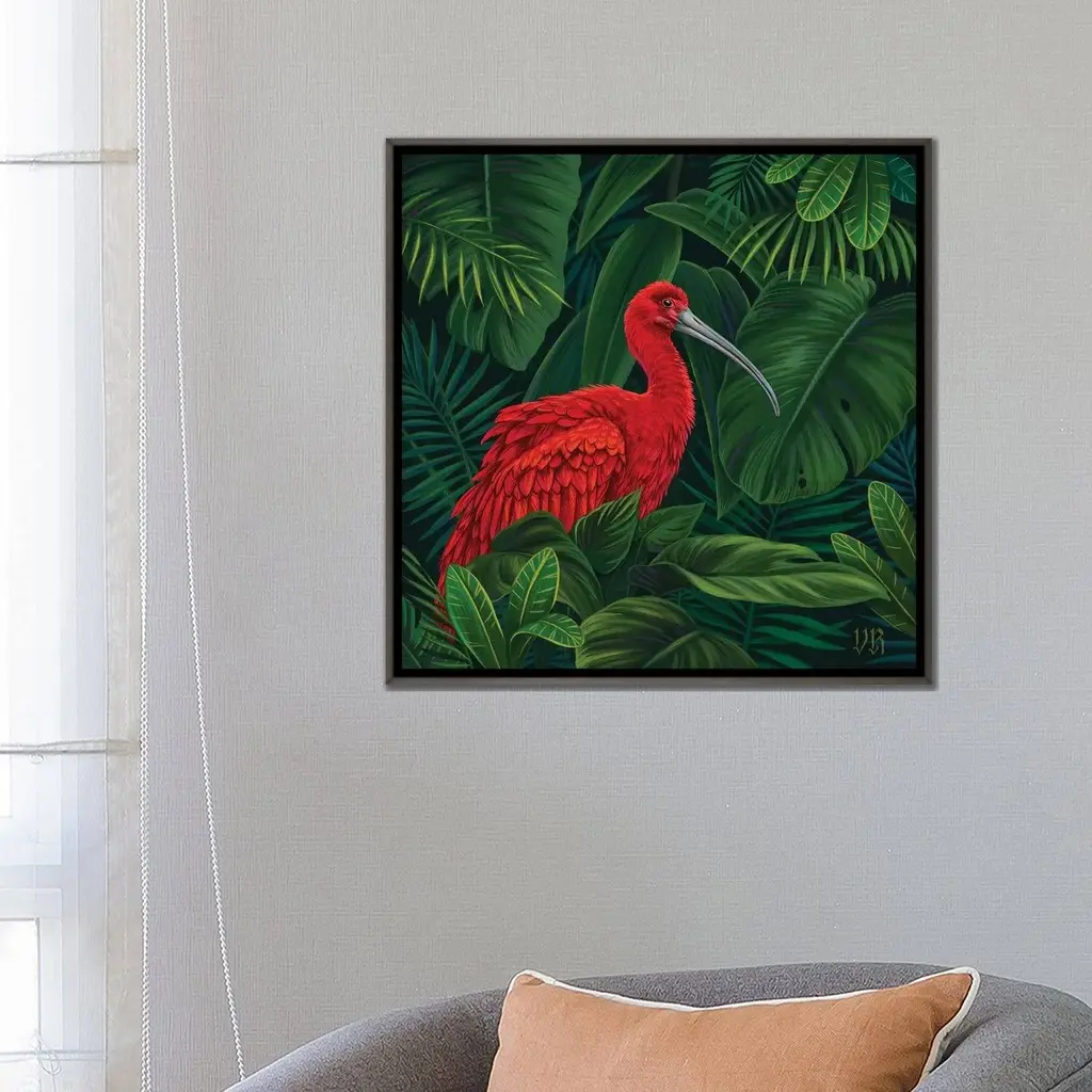 Icanvas "Scarlet Ibis" By Vasilisa Romanenko Framed - Charcoal - 12x12