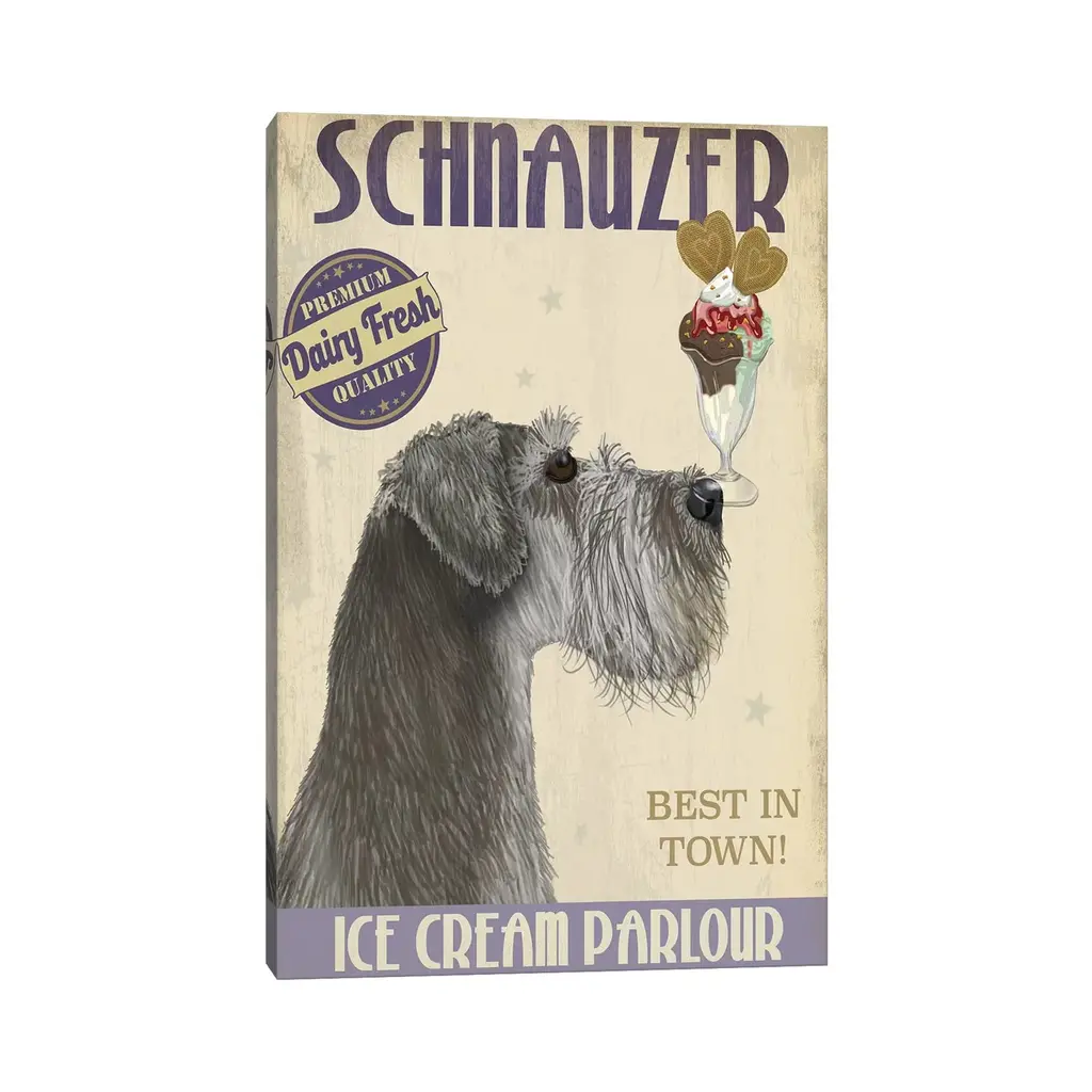 Icanvas "Schnauzer, Grey, Ice Cream" By Fab Funky Canvas Print - 26x18x1.5