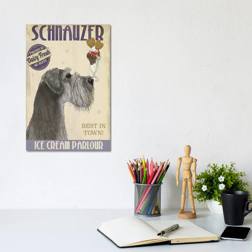 Icanvas "Schnauzer, Grey, Ice Cream" By Fab Funky Canvas Print - 40x26x1.5