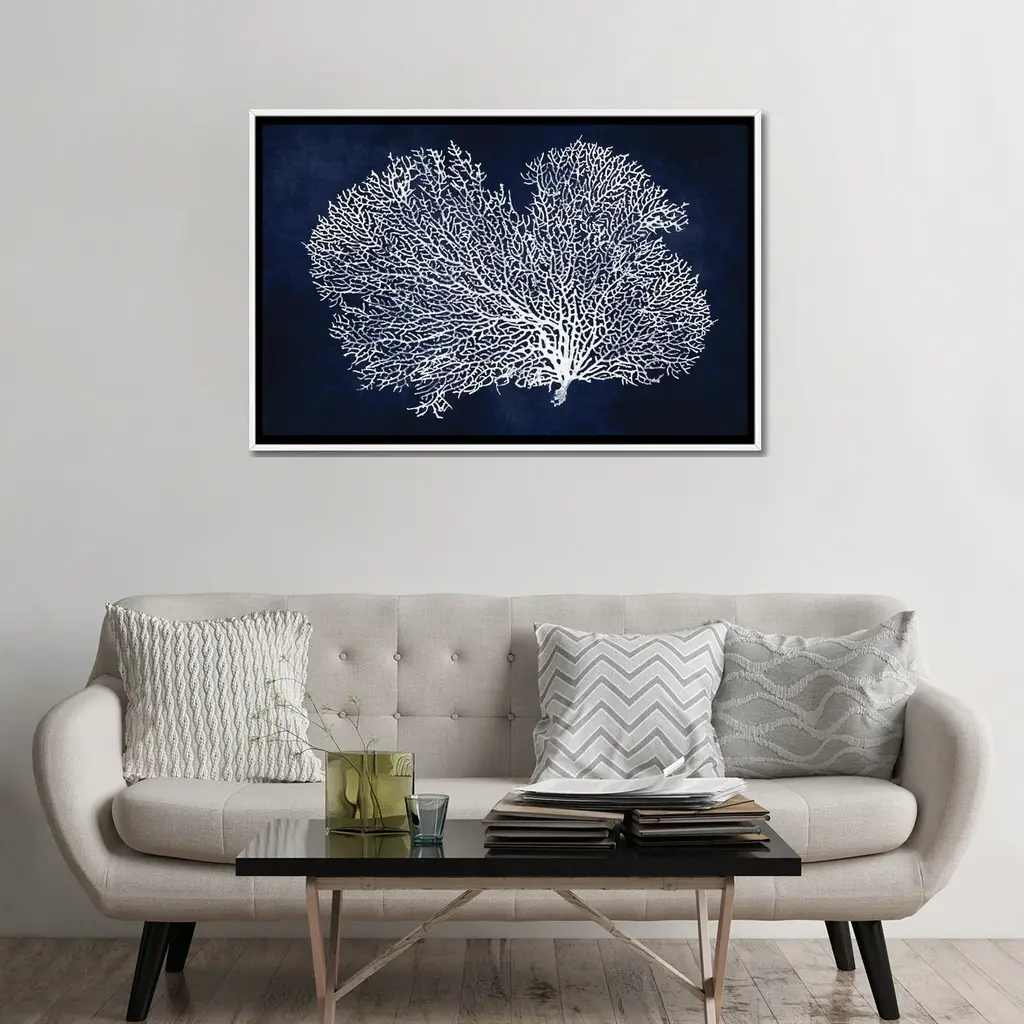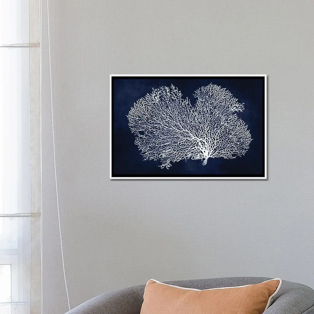 Icanvas "Sea Fan On Indigo Blue Ii" By Melonie Miller Framed Canvas Print - White - 18x26