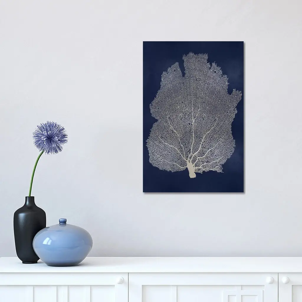 Icanvas "Sea Fan Silver On Blue I" By Melonie Miller Canvas Print - 12x8x0.75