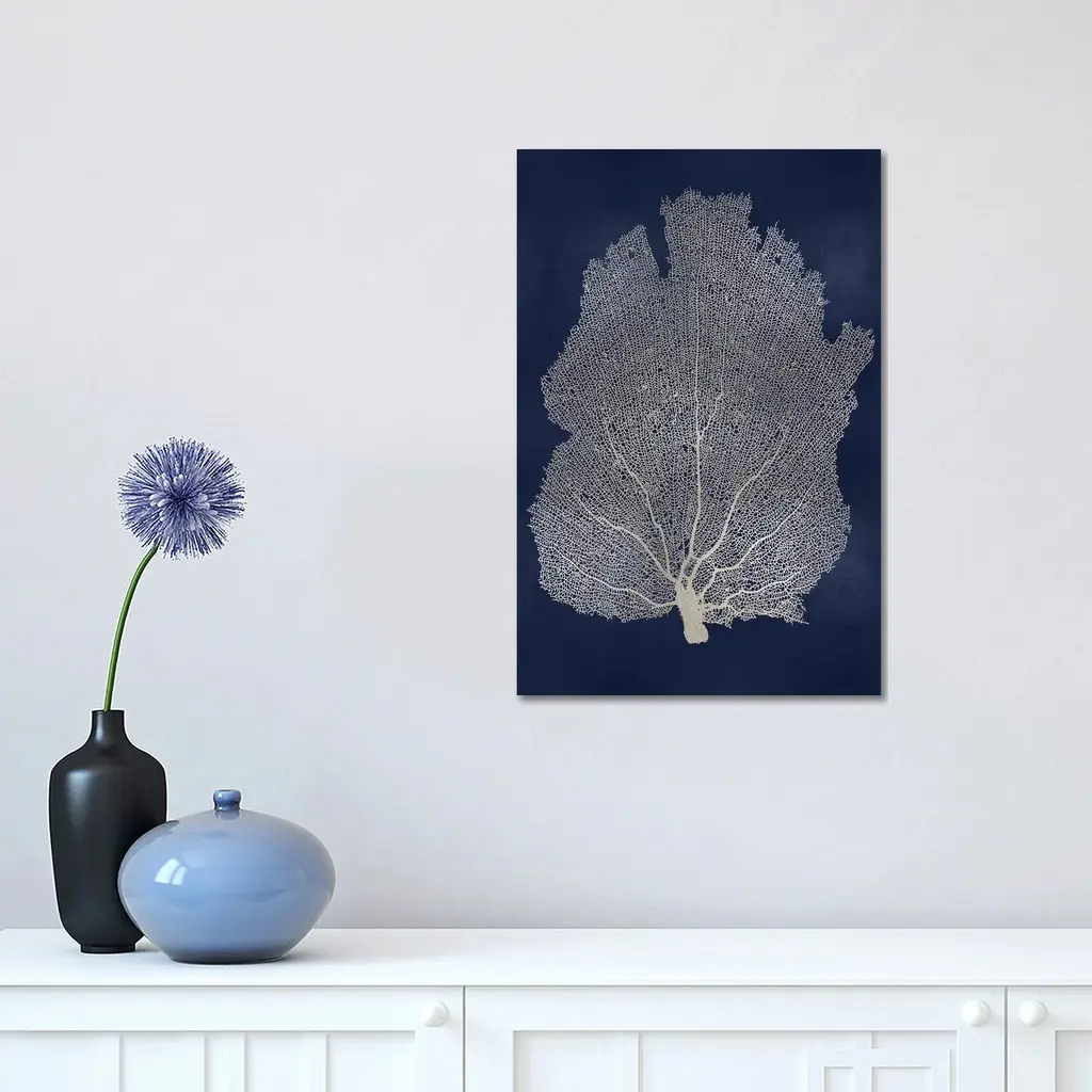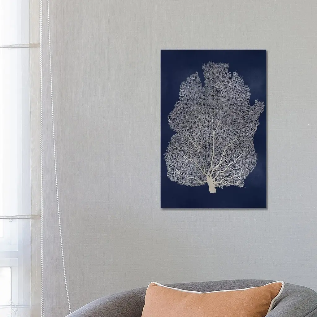 Icanvas "Sea Fan Silver On Blue I" By Melonie Miller Canvas Print - 18x12x1.5