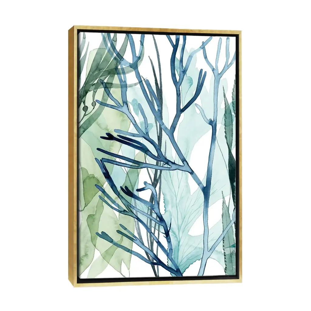 Icanvas "Sea Leaves Ii" By Grace Popp Framed Canvas Print - Gold - 48x32