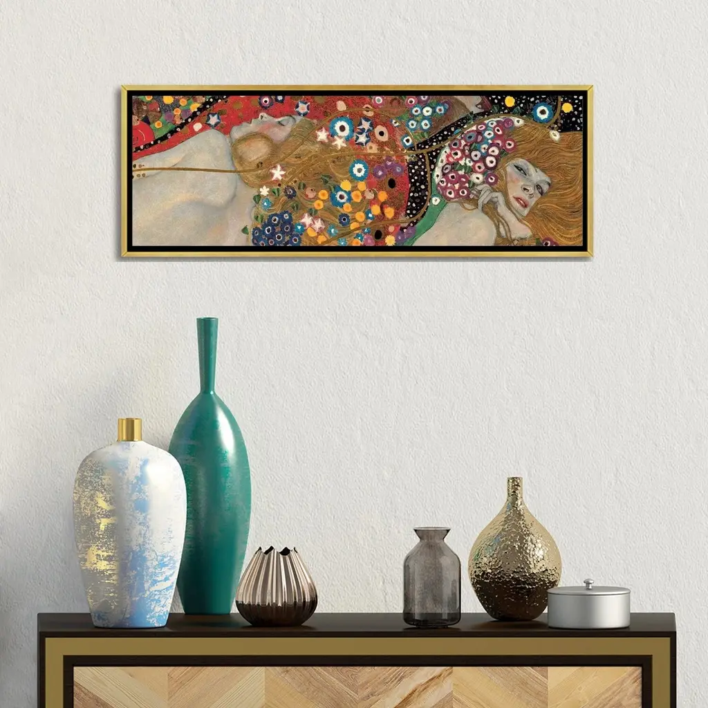 Icanvas "Sea Serpents, Detail I" By Gustav Klimt Framed Canvas Print - 12x36 - Gold