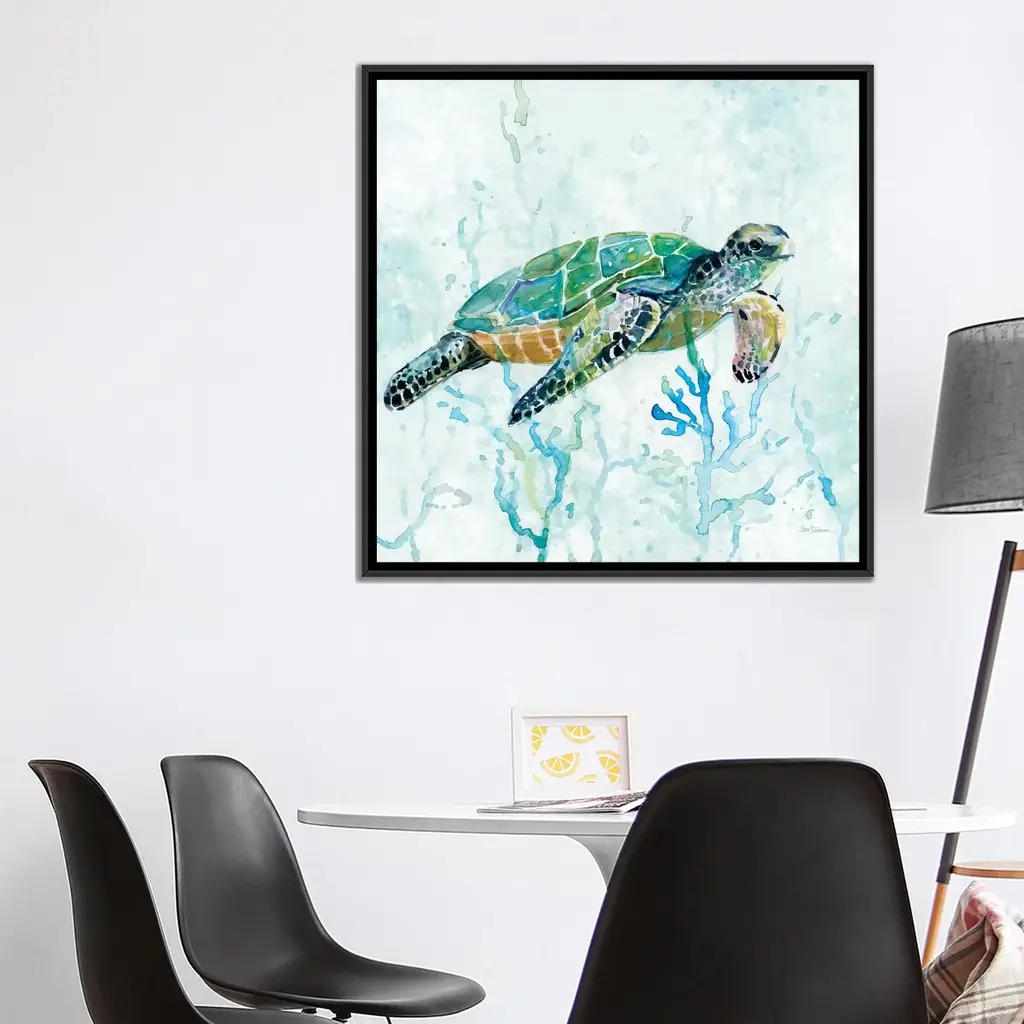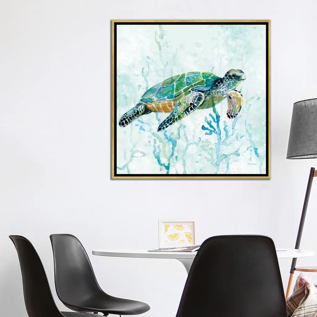 Icanvas "Sea Turtle Swim I" By Carol Robinson Framed Canvas Print - Black - 12x12