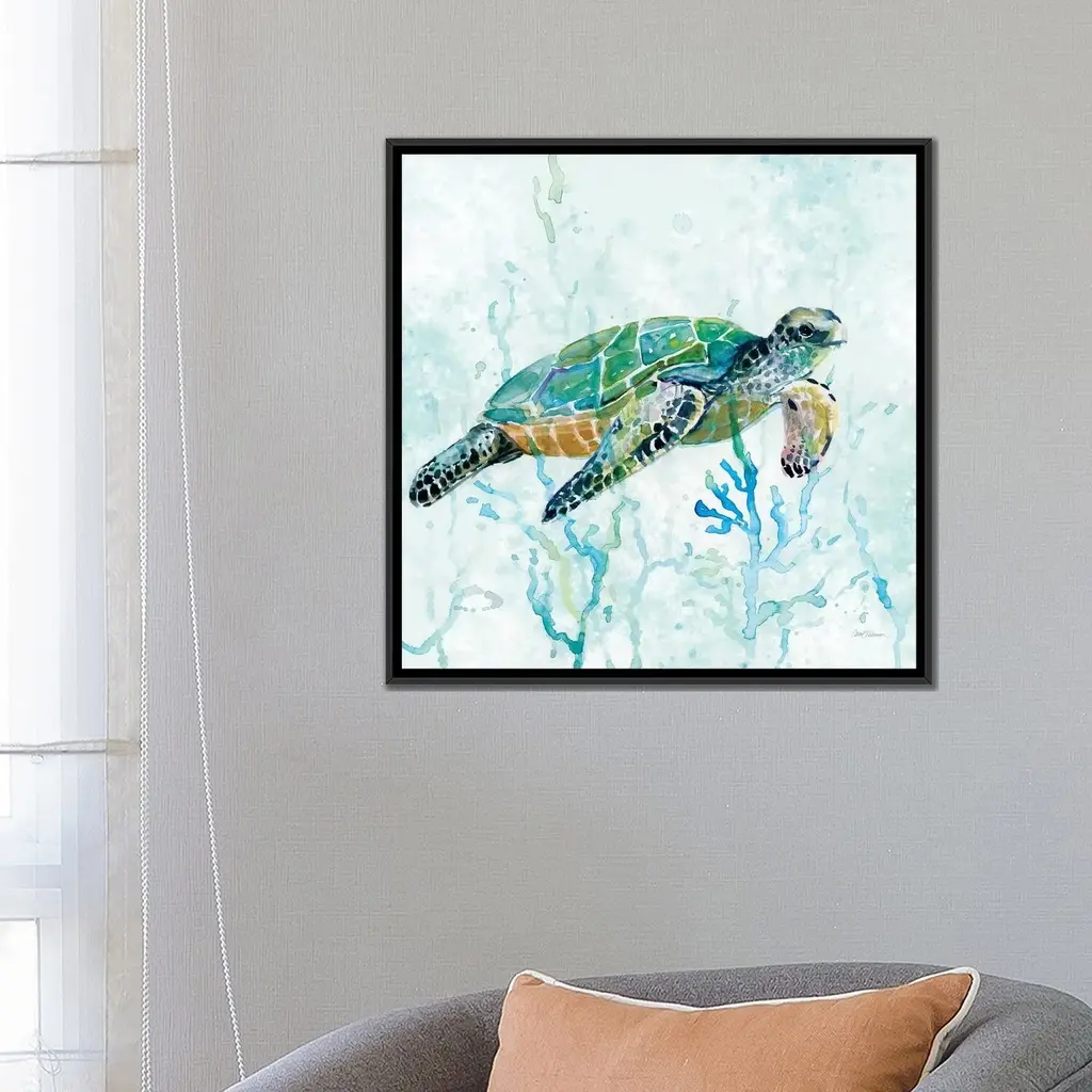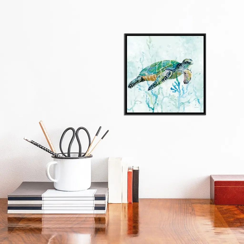 Icanvas "Sea Turtle Swim I" By Carol Robinson Framed Canvas Print - White - 18x18
