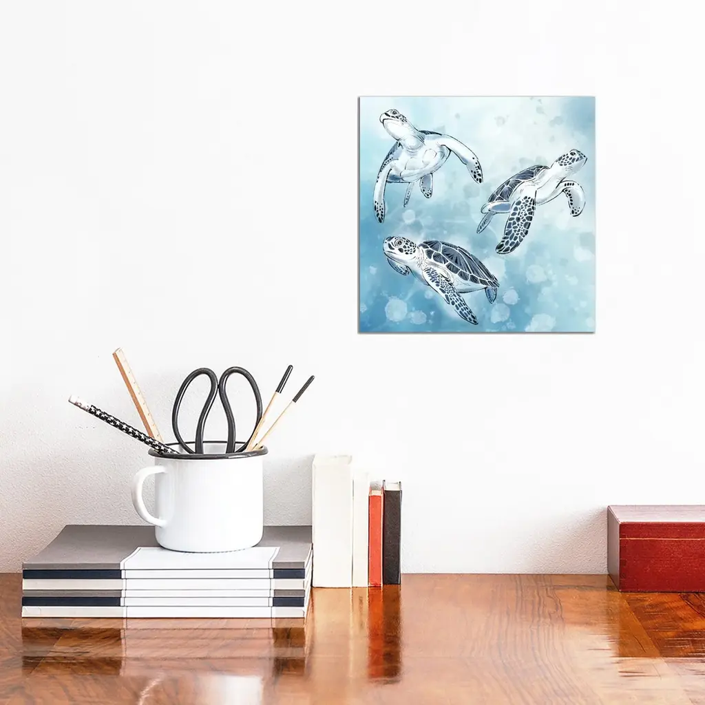 Icanvas "Sea Turtles In Ocean Blue" By Thomas Little Canvas Print - 12x12x0.75