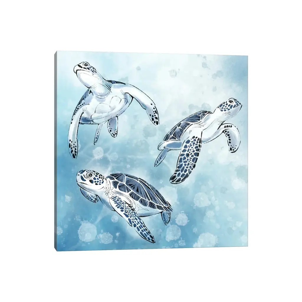 Icanvas "Sea Turtles In Ocean Blue" By Thomas Little Canvas Print - 12x12x1.5