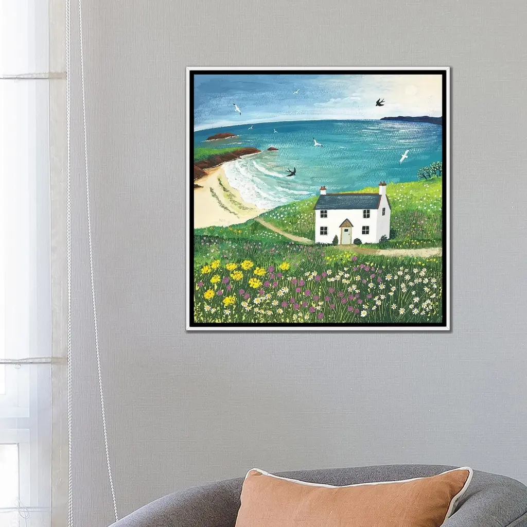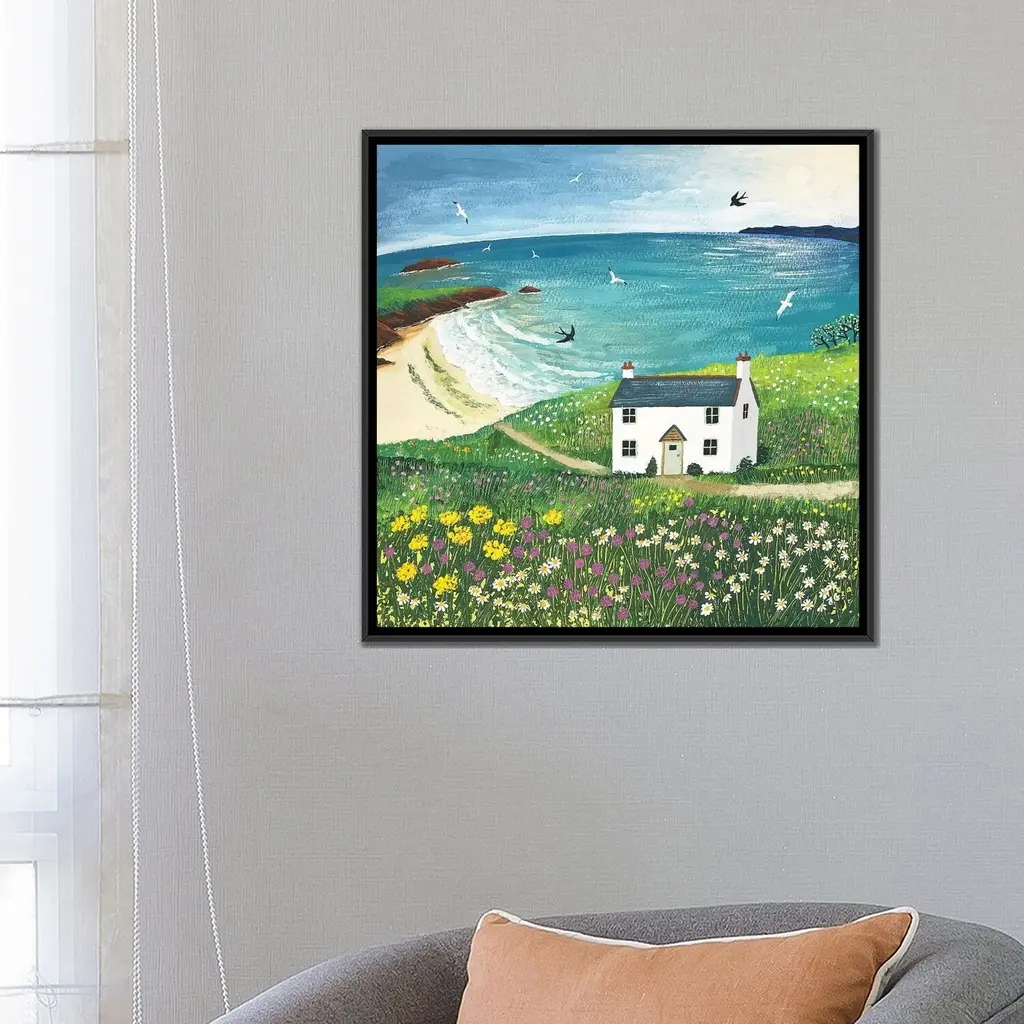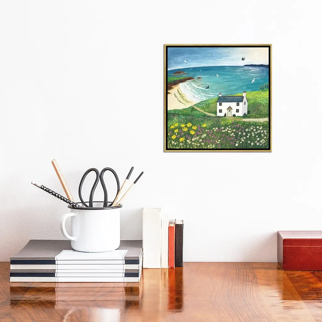 Icanvas "Seaside Cottage" By Jo Grundy Framed Canvas Print - Gold - 12x12