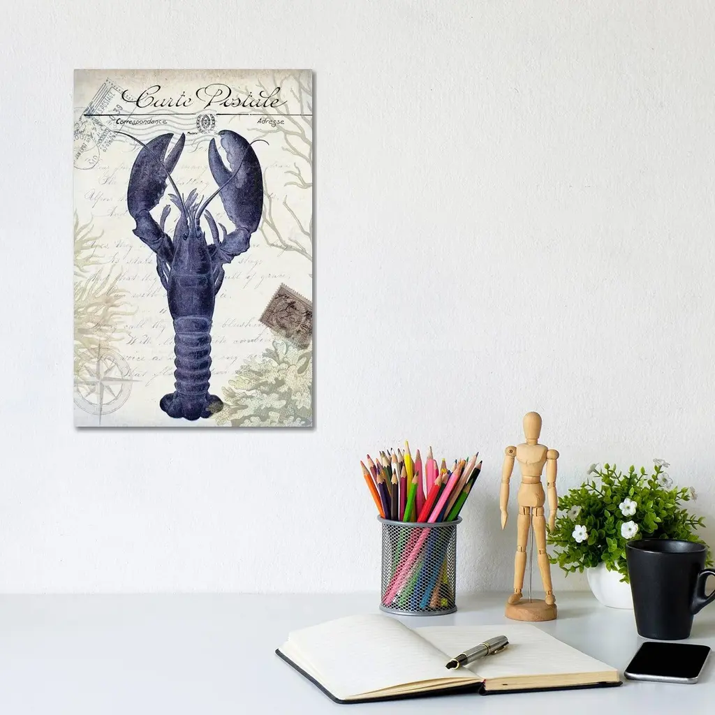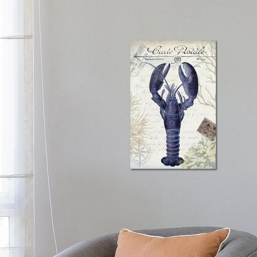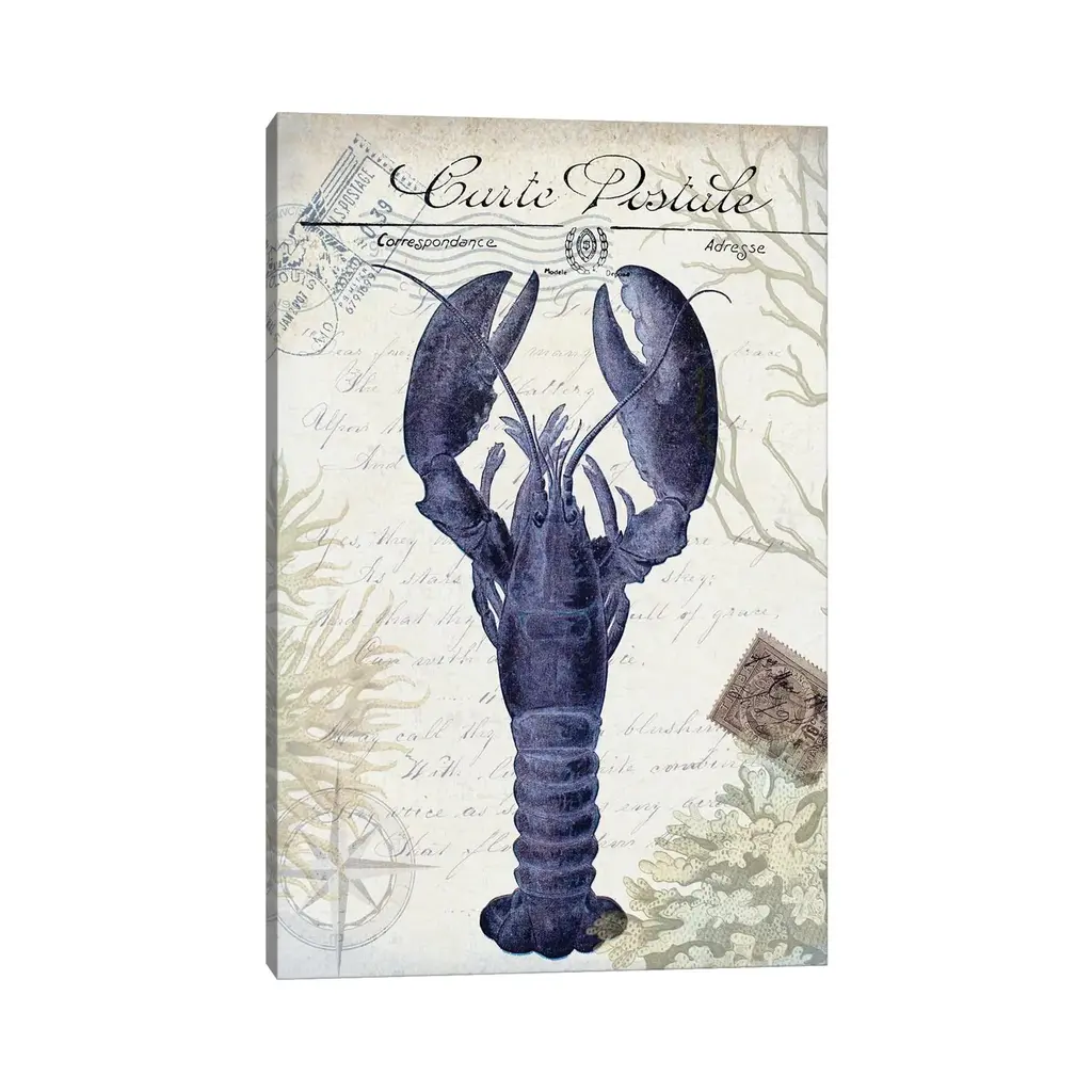 Icanvas "Seaside Postcard On Cream - Lobster" By Fab Funky Canvas Print - 26x18x1.5