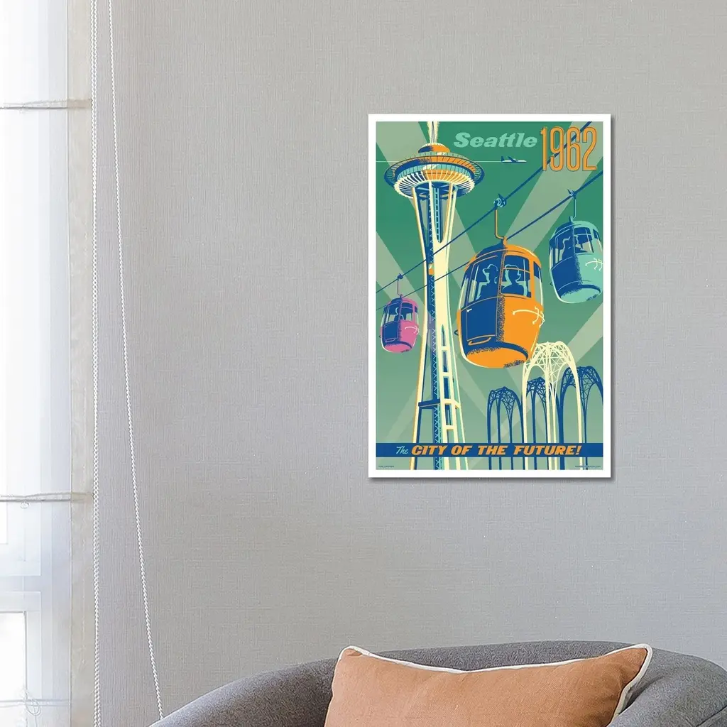 Icanvas "Seattle 1962 Travel Poster" By Jim Zahniser Canvas Print - 12x8x0.75