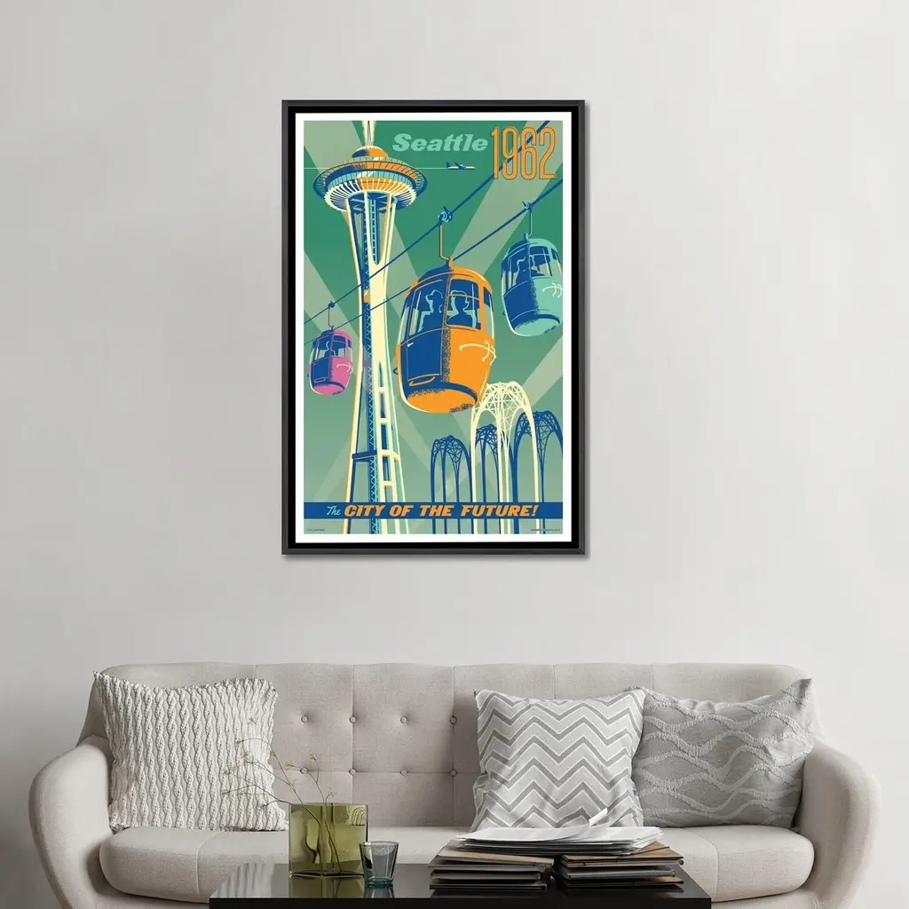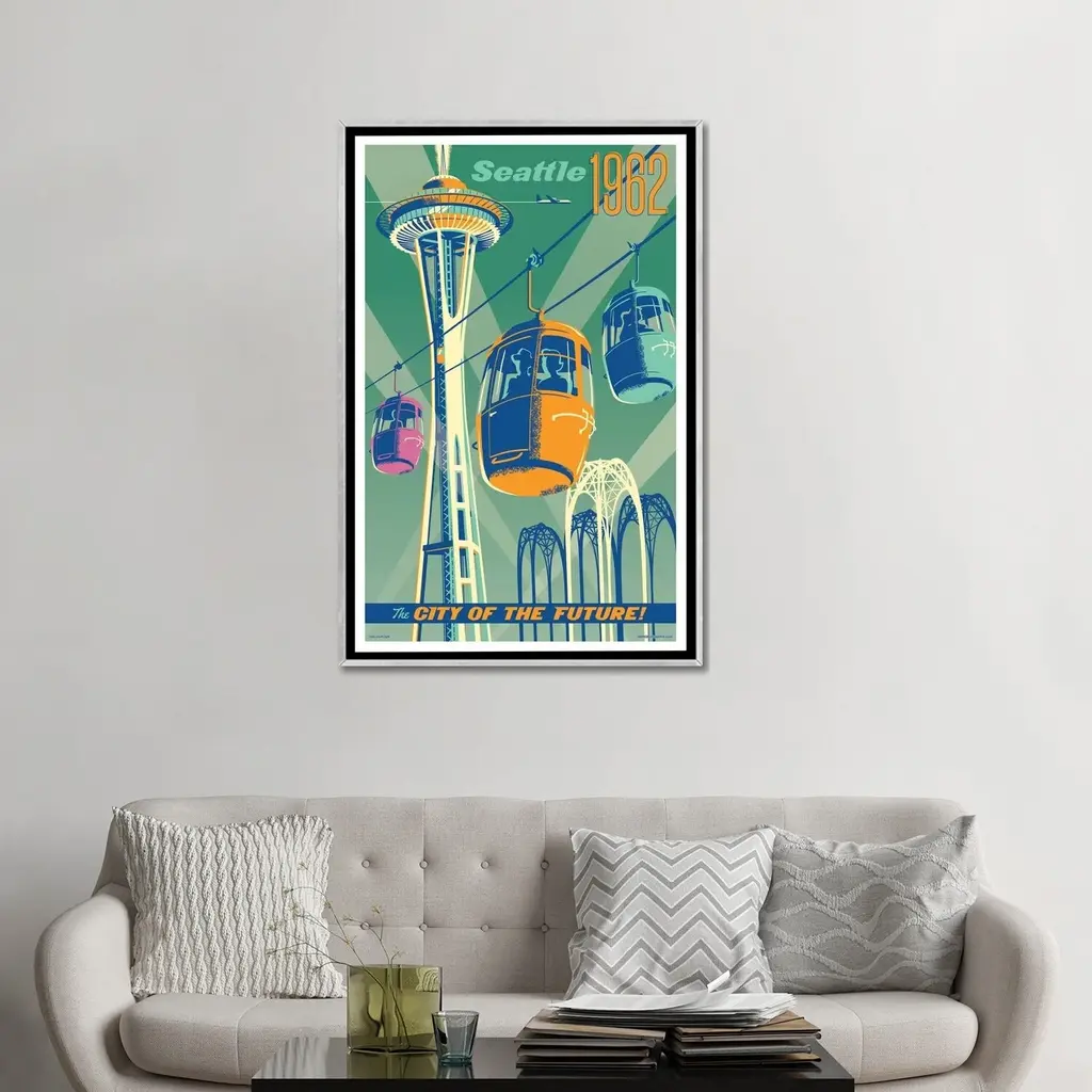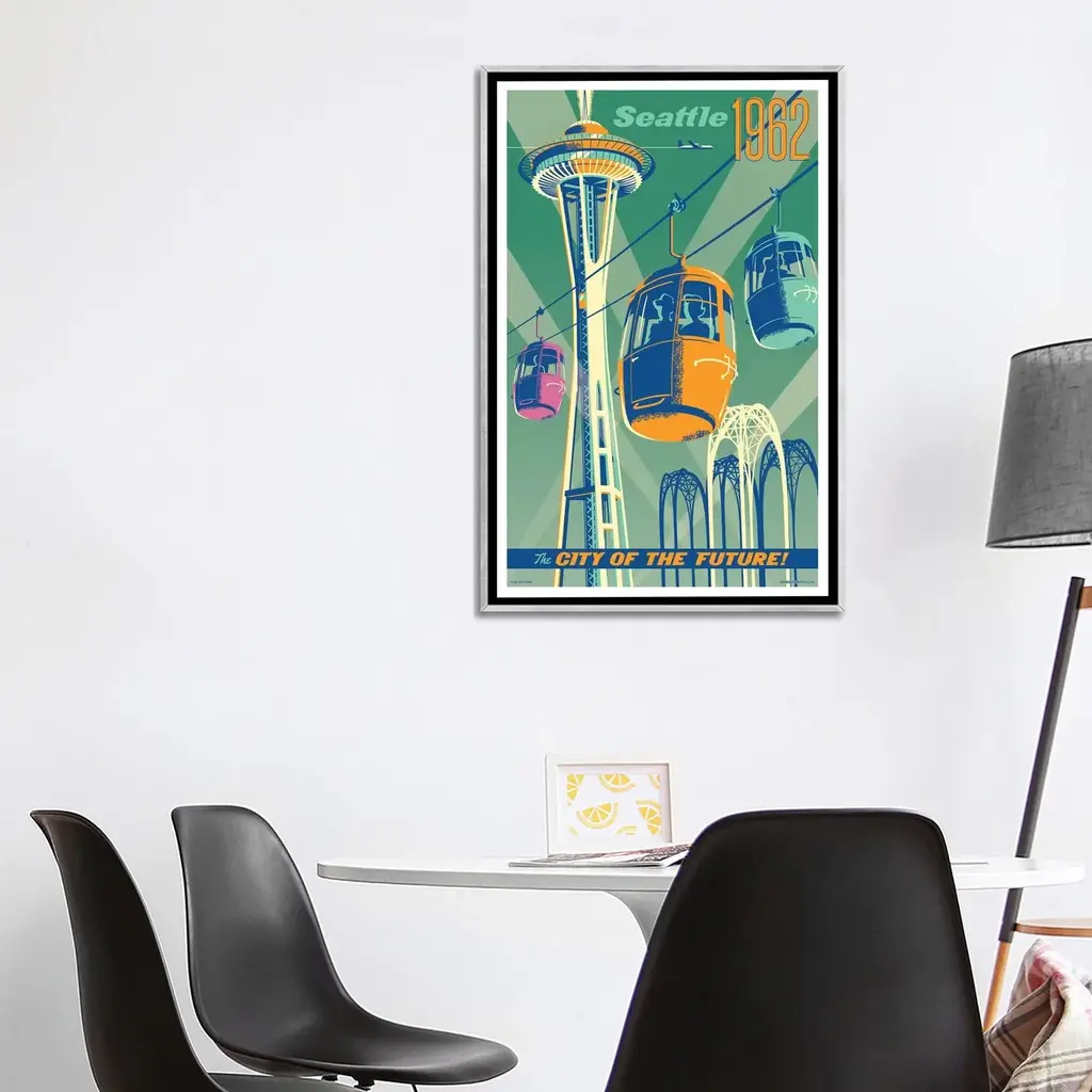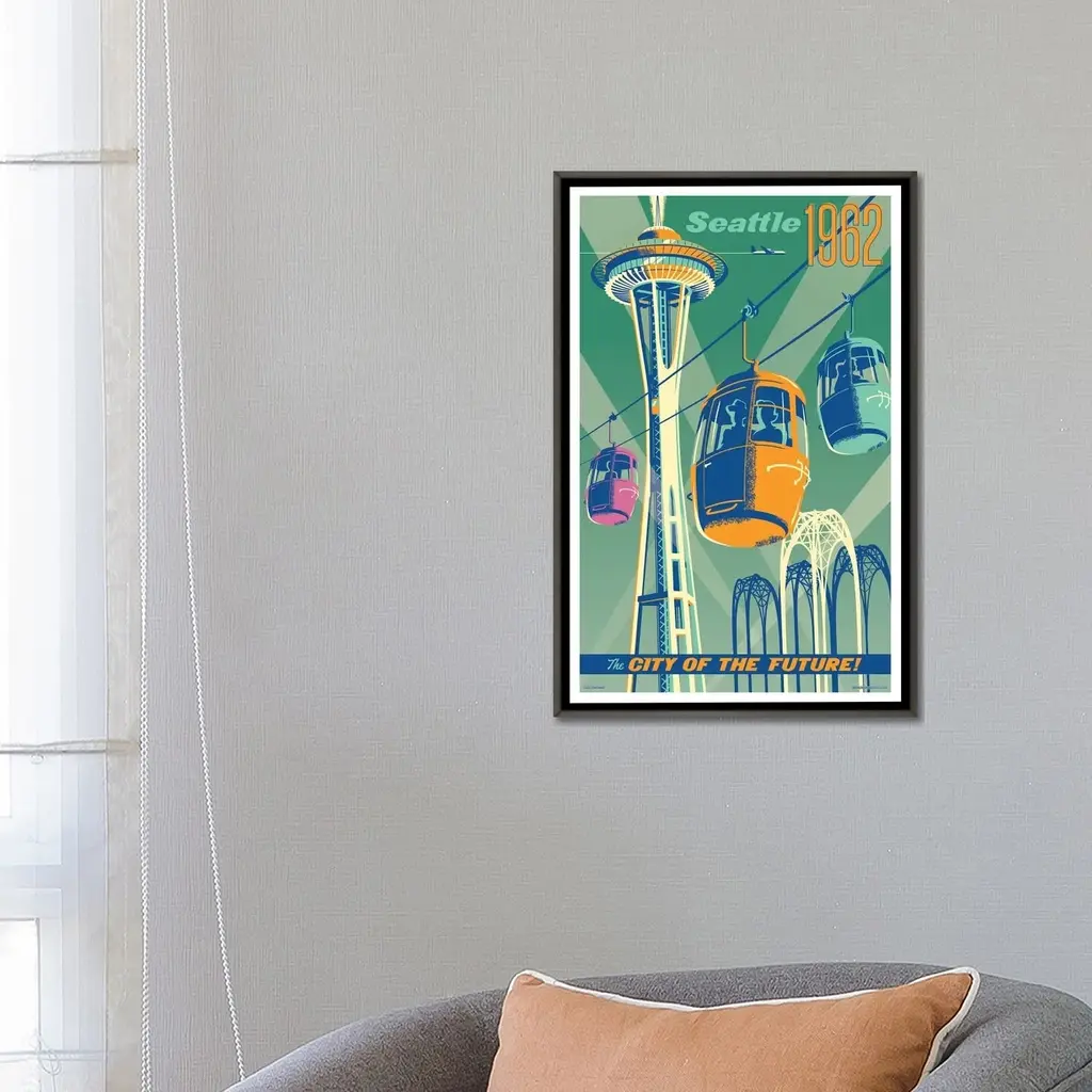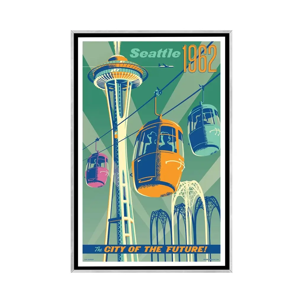 Icanvas "Seattle 1962 Travel Poster" By Jim Zahniser Framed - Ebony - 48x32