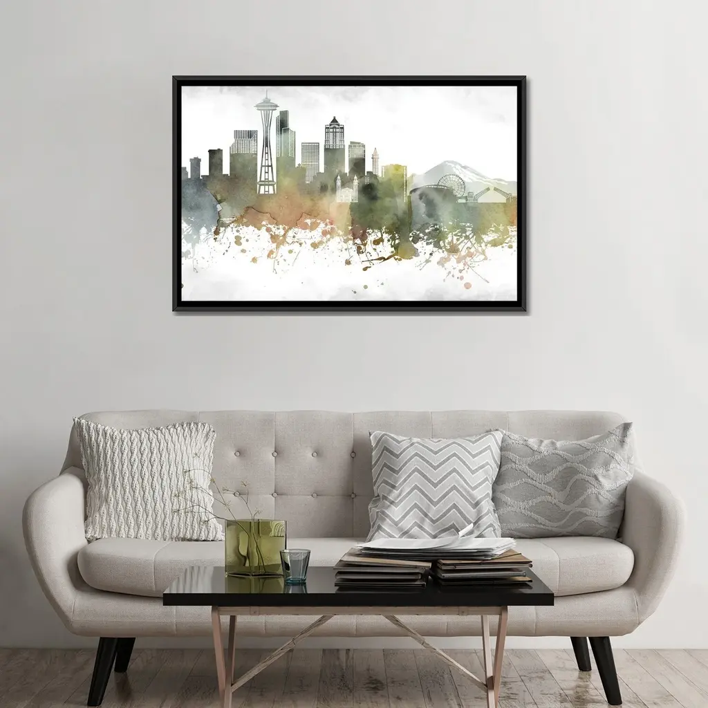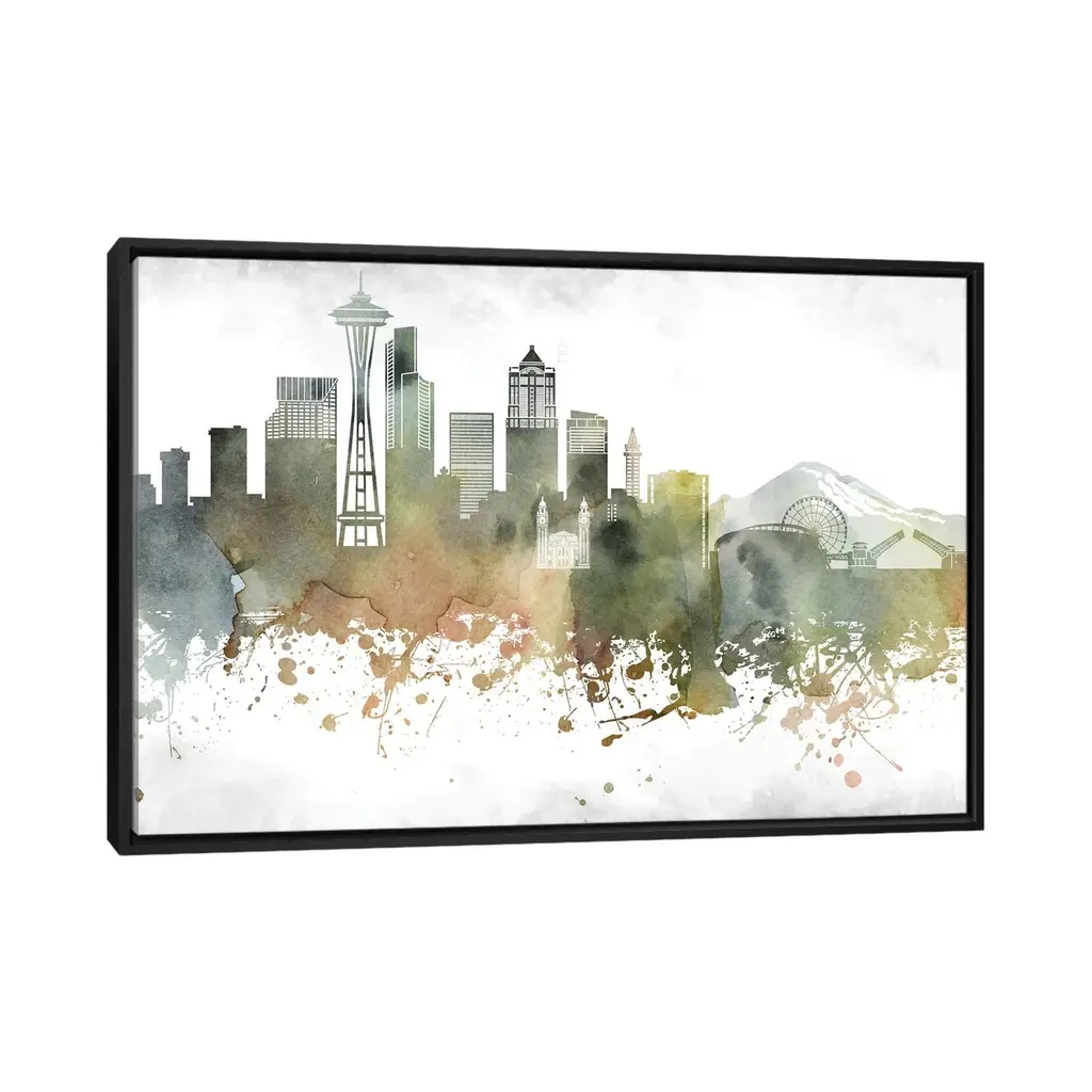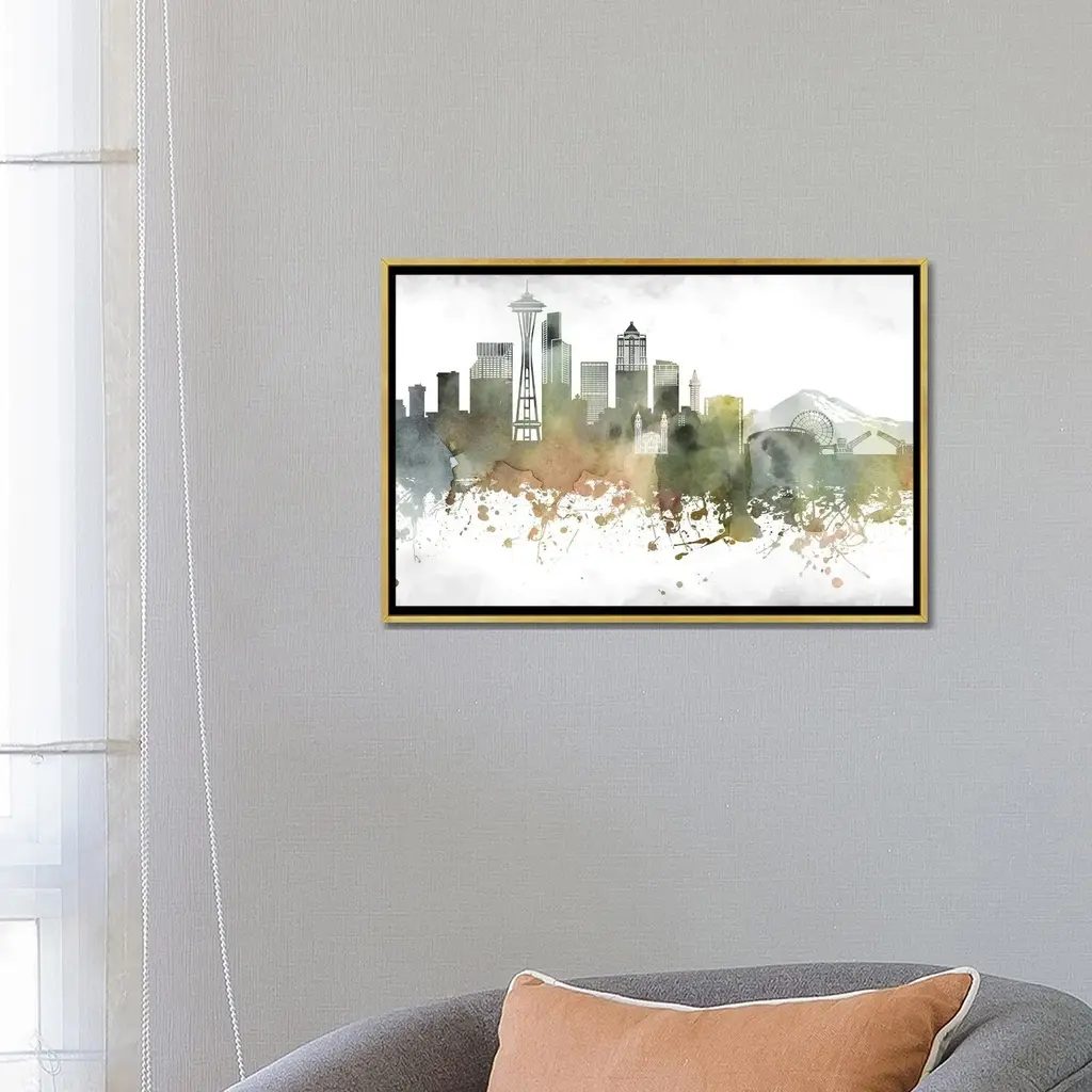 Icanvas "Seattle Skyline" By Walldecoraddict Framed Canvas Print - Gold - 26x40