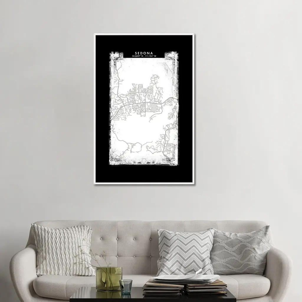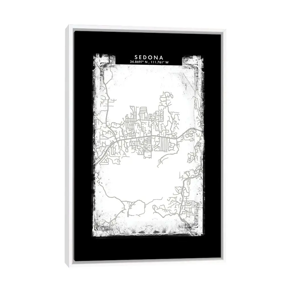 Icanvas "Sedona, Arizona City Map Black White Grey Style" By Walldecoraddict Framed Canvas Print - White - 26x18