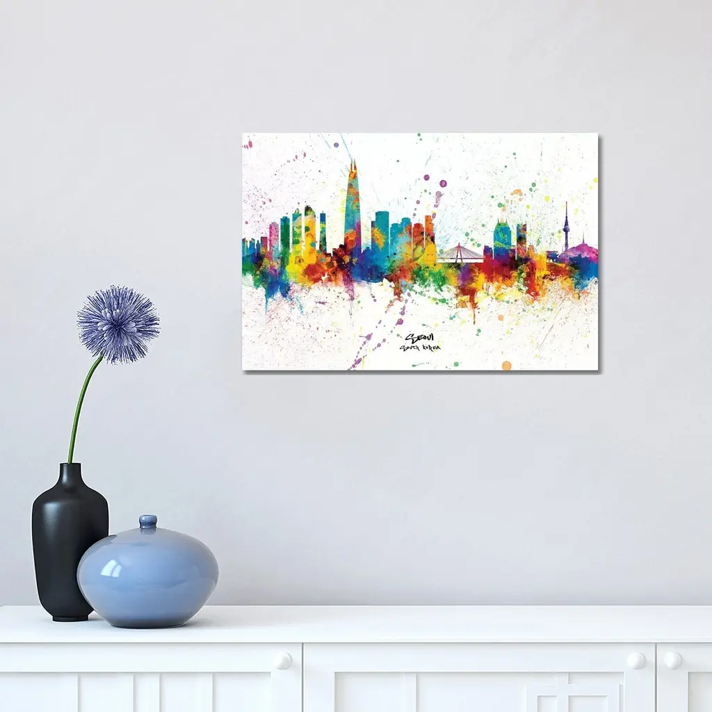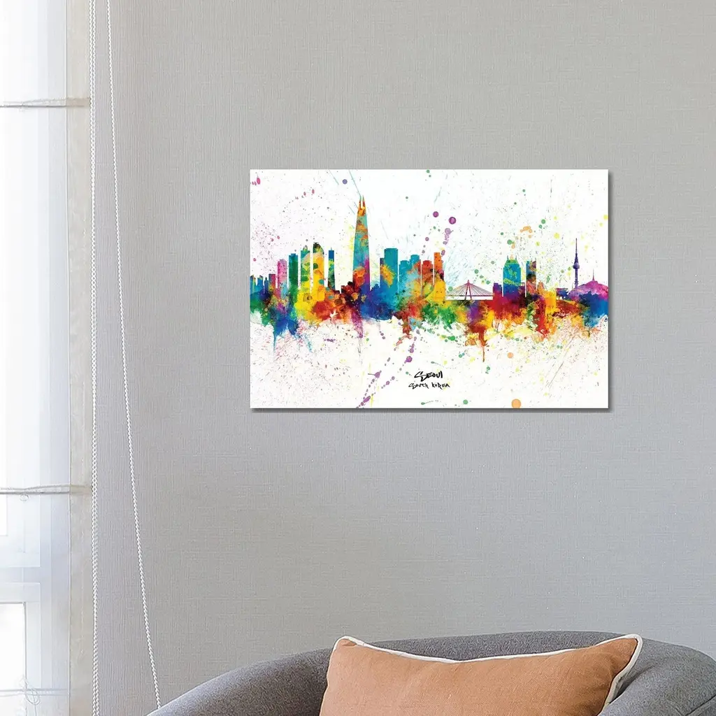 Icanvas "Seoul South Korea Skyline Splash" By Michael Tompsett Canvas Print - 8X12x0.75