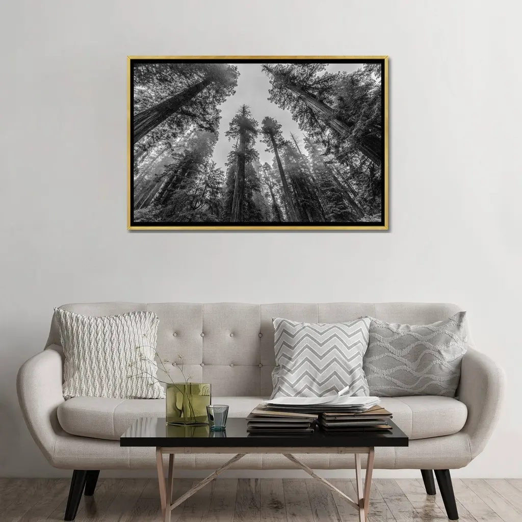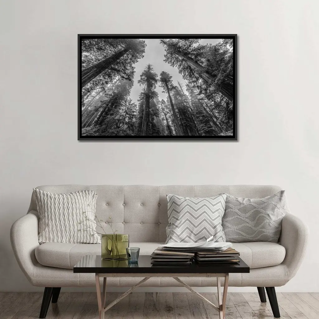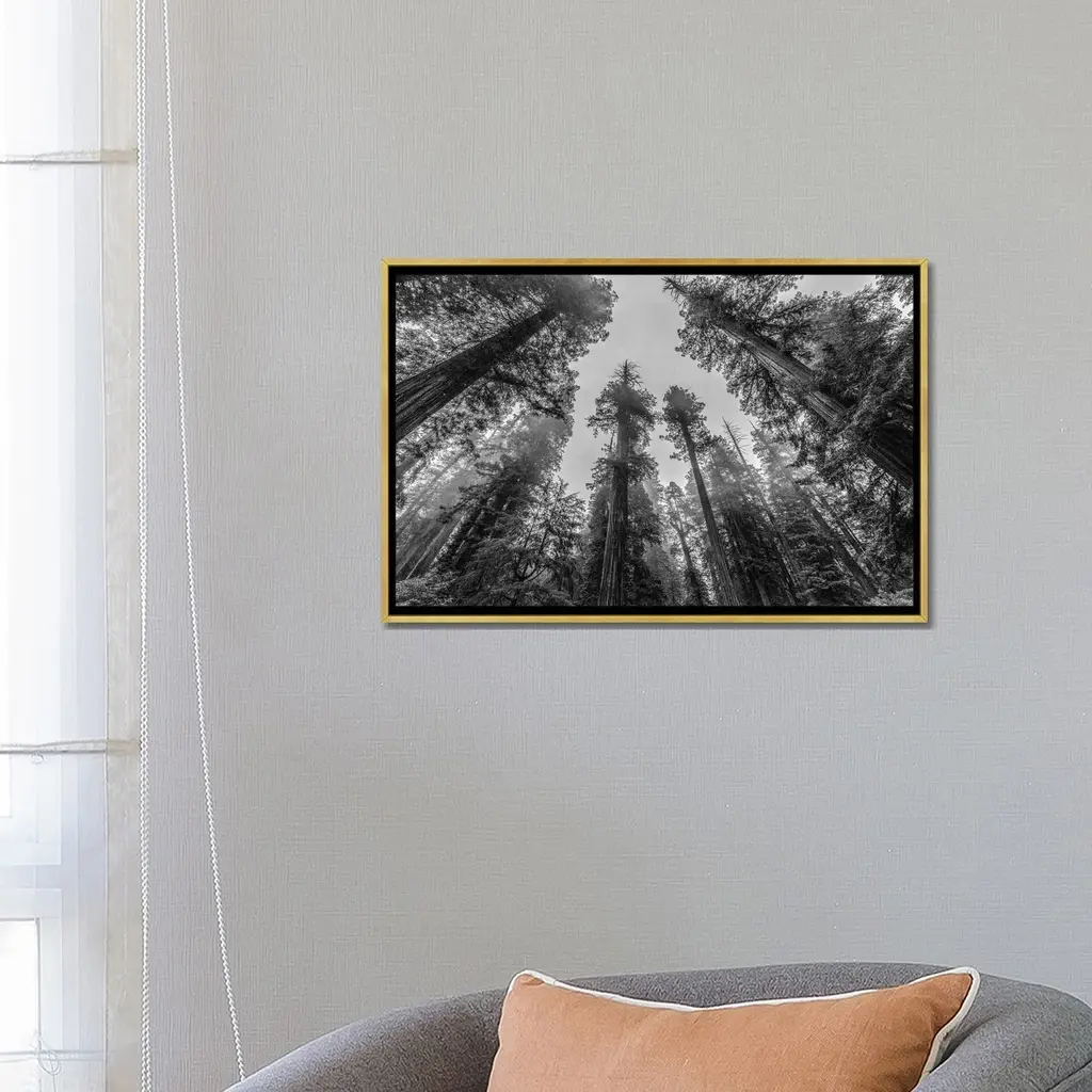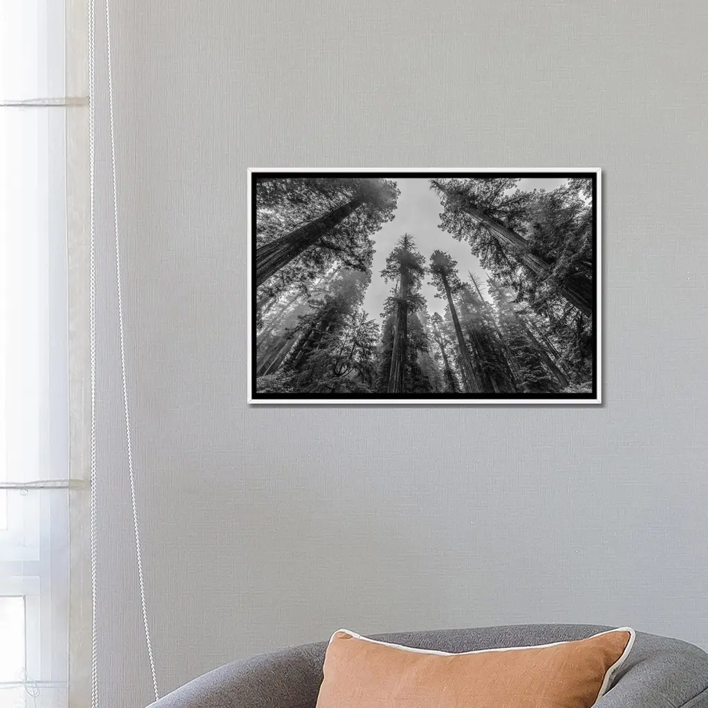 Icanvas "Sequoia Tree Forest Sky Black And White" By Nature Magick Framed Canvas Print - Black - 32x48