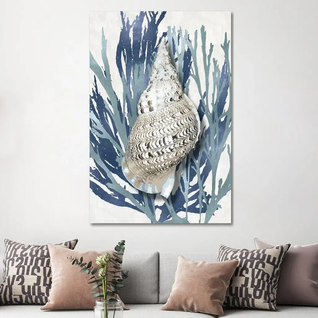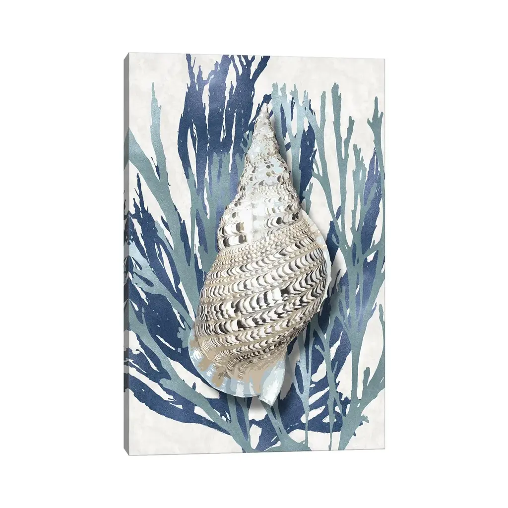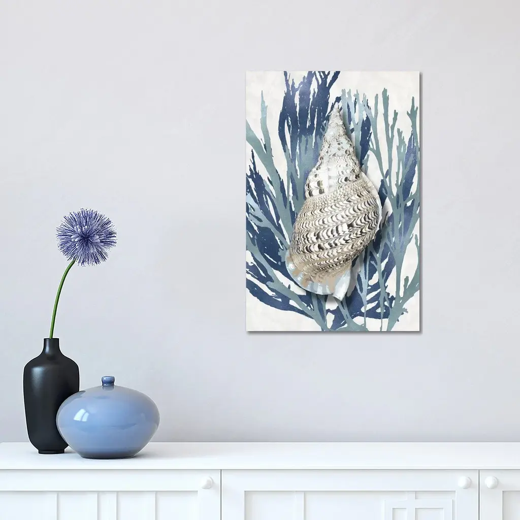 Icanvas "Shell Coral Aqua Blue I" By Caroline Kelly Canvas Print - 26x18x1.5
