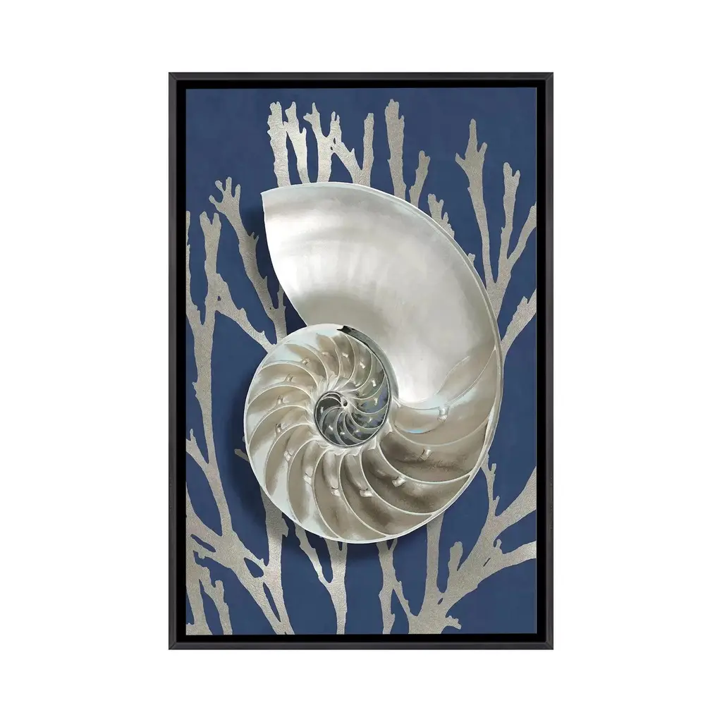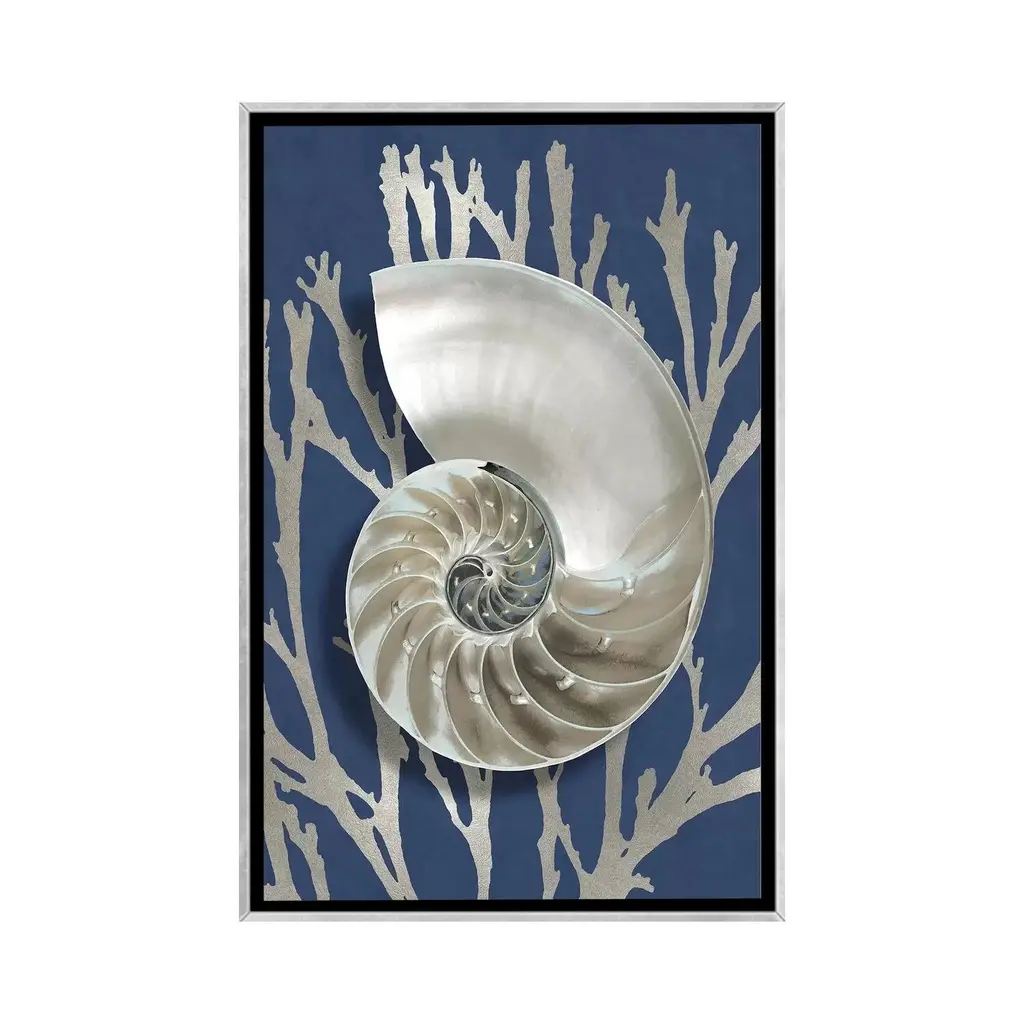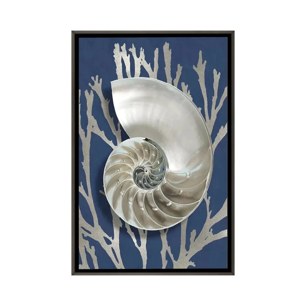 Icanvas "Shell Coral Silver On Blue Ii" By Caroline Kelly Framed - Charcoal - 26x18