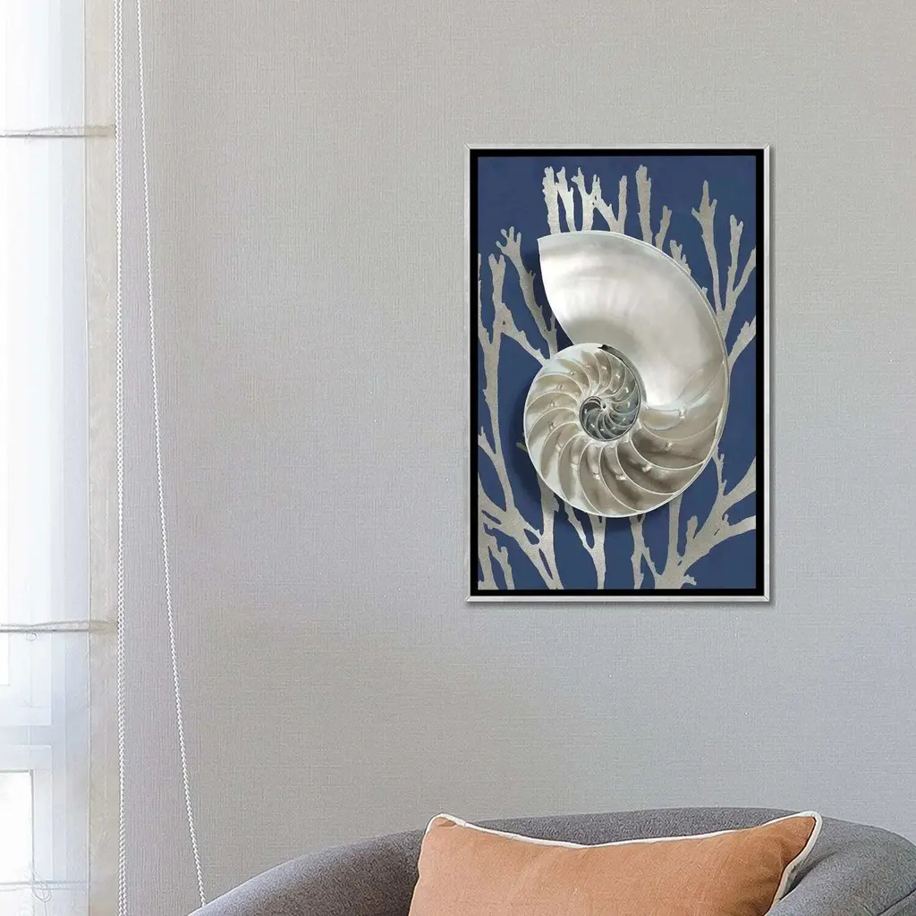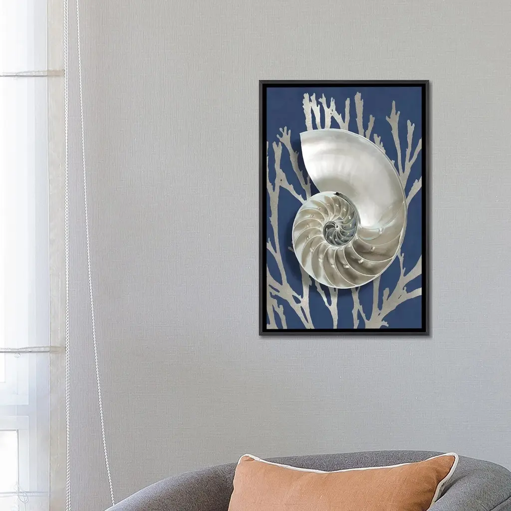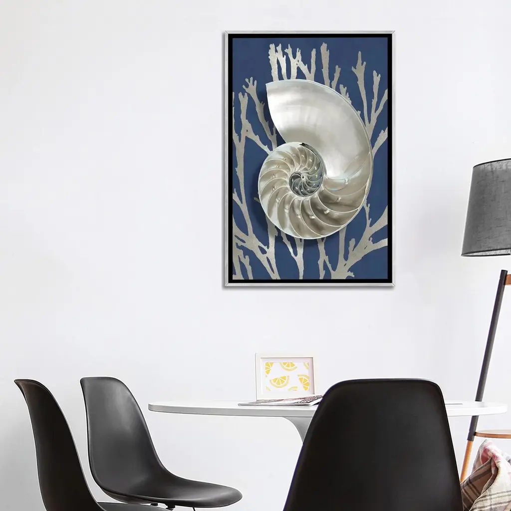 Icanvas "Shell Coral Silver On Blue Ii" By Caroline Kelly Framed - Charcoal - 26x18