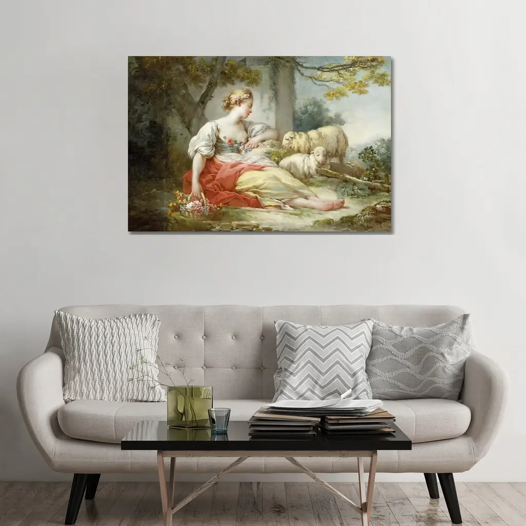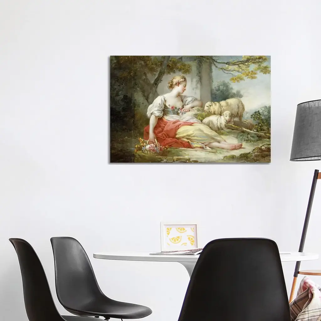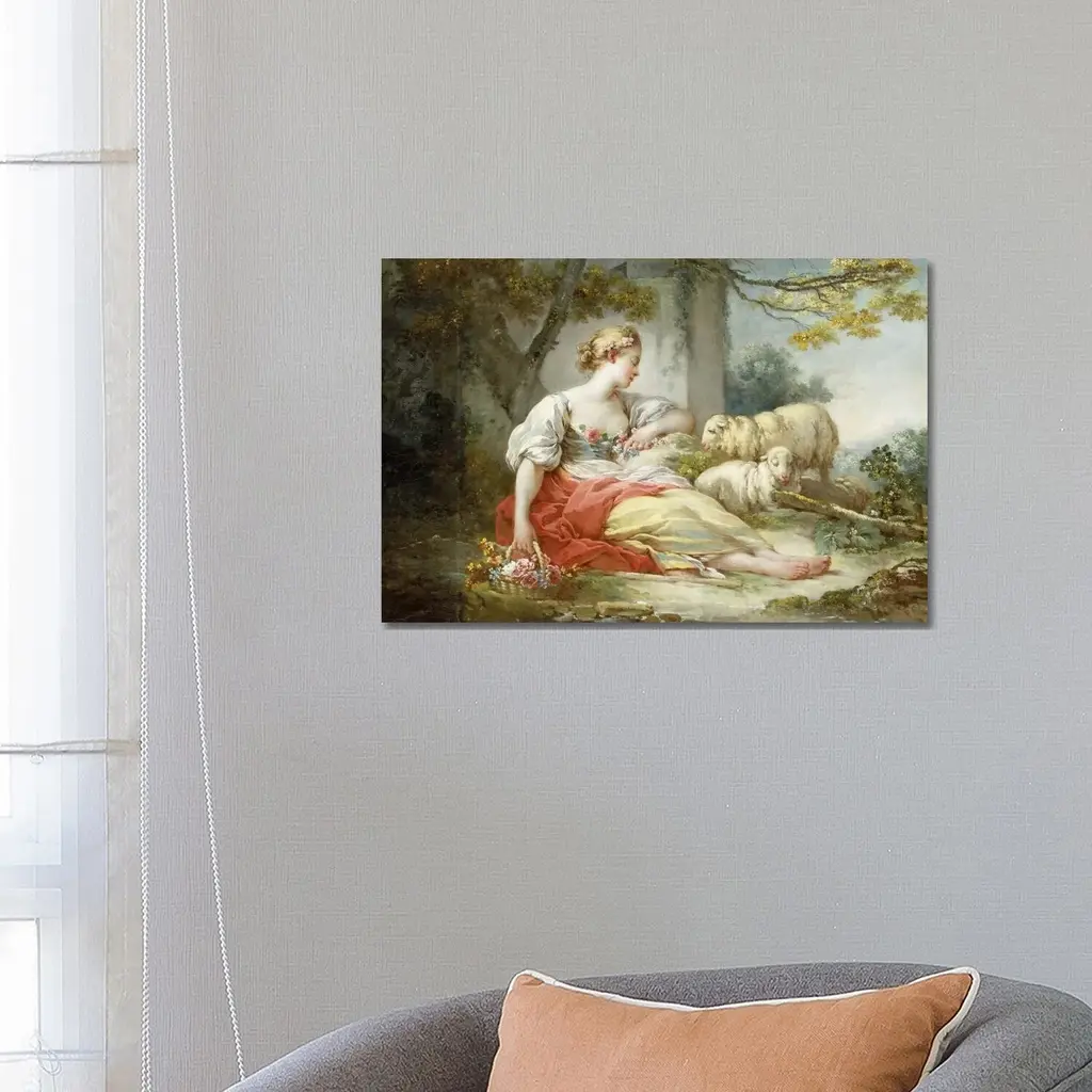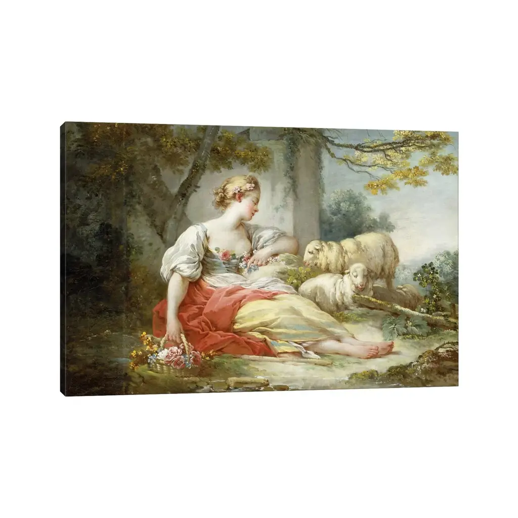 Icanvas "Shepherdess With Sheep And A Basket Of Flowers Near A Ruin In A Wooded Landscape" By Jean-Honore Fragonard Canvas Print - 12x18x1.5
