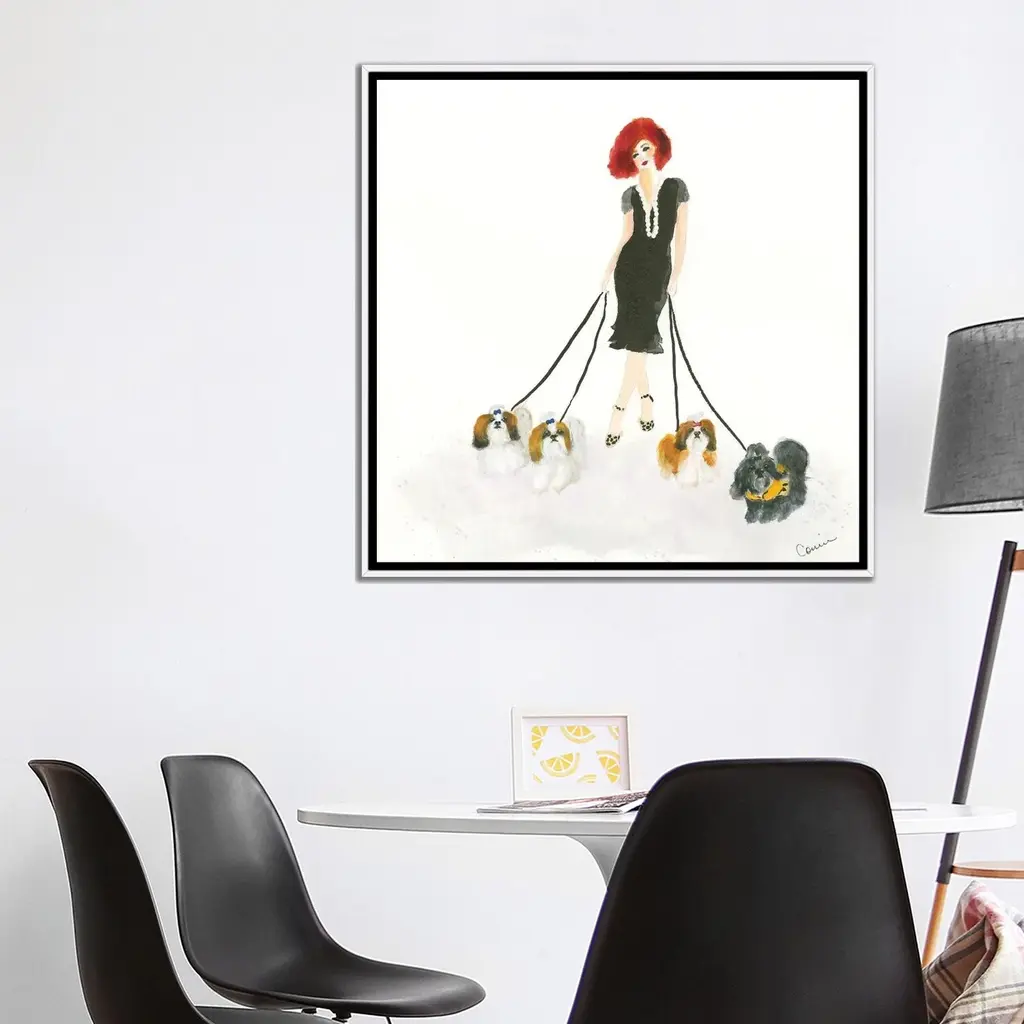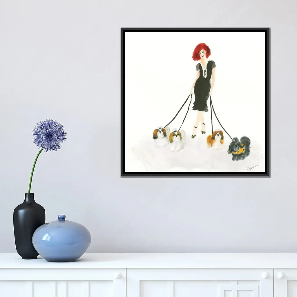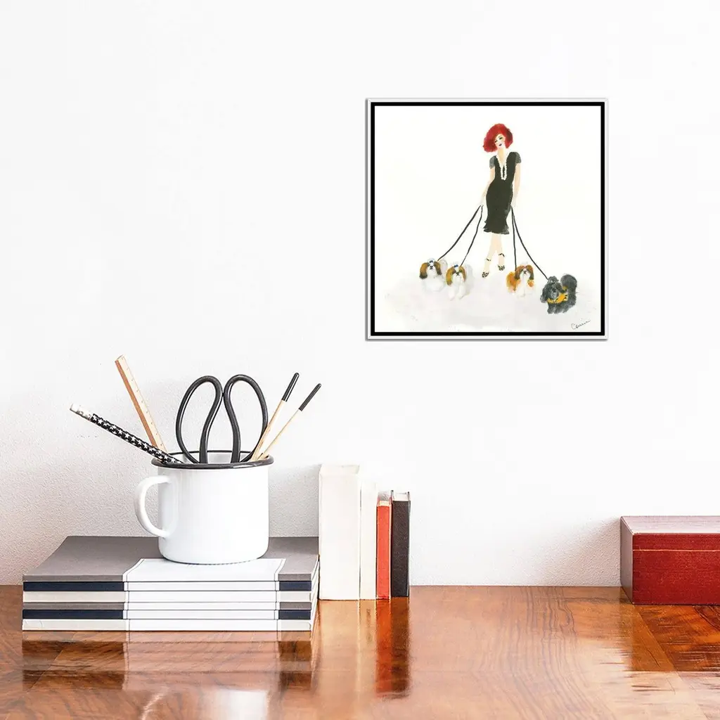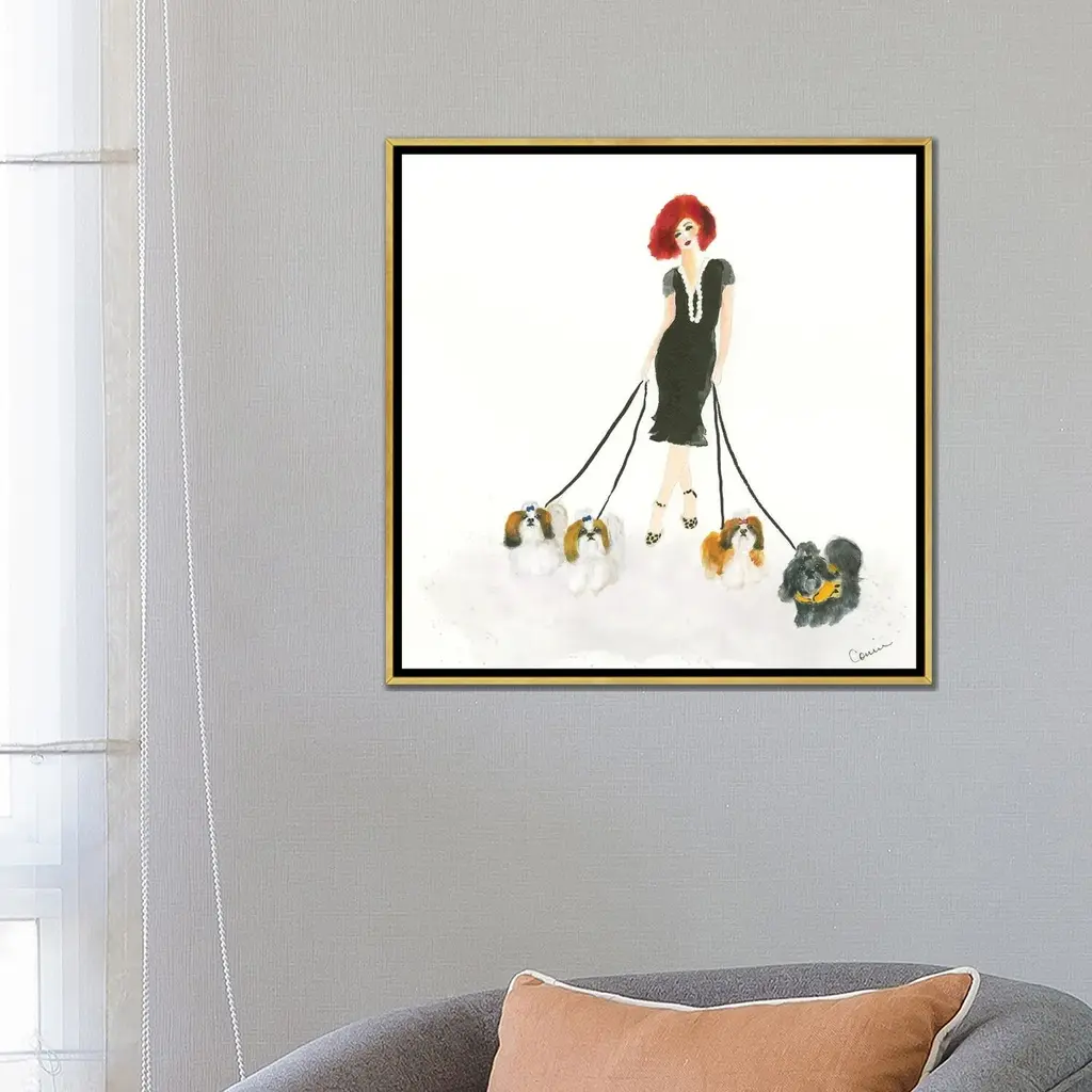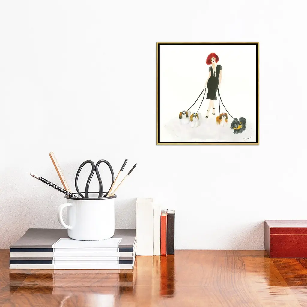 Icanvas "Shih Tzu Stroll" By Connie Collum Framed Canvas Print - Black - 37x37