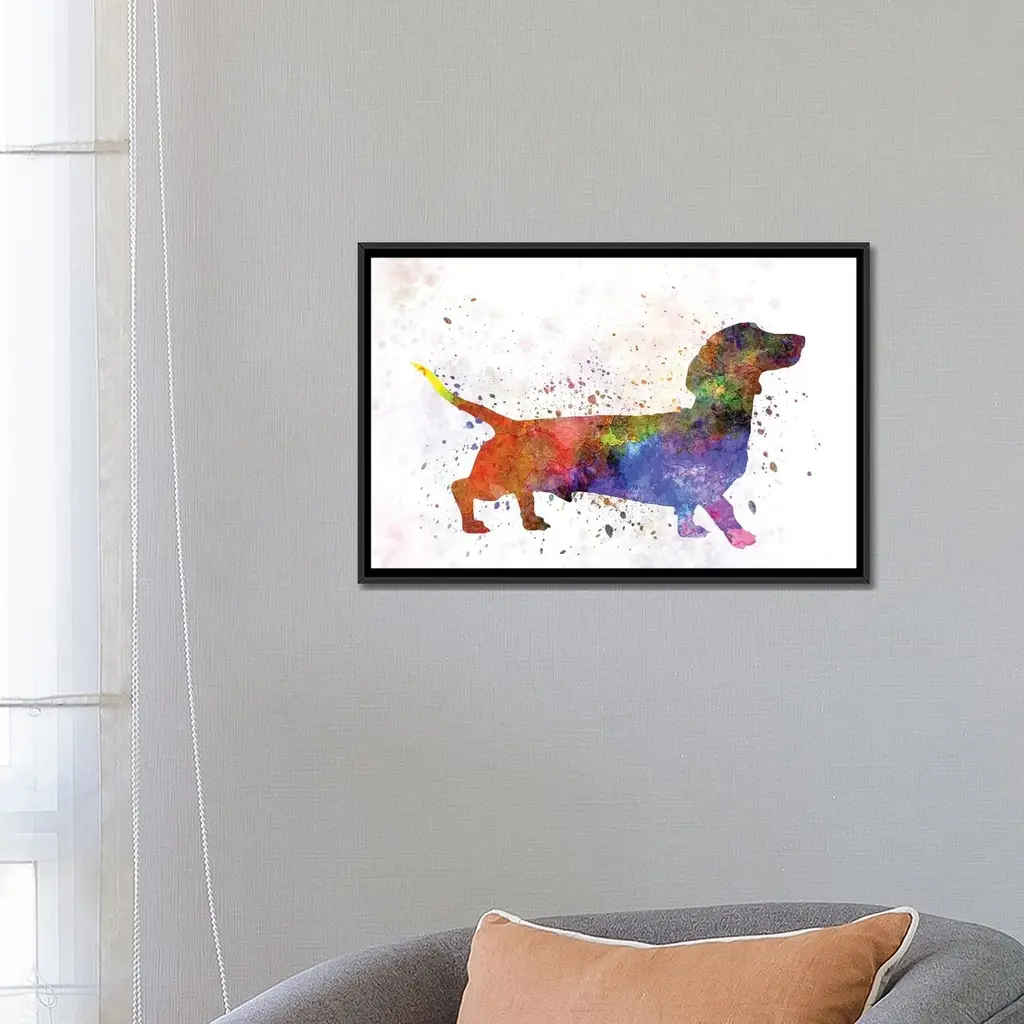 Icanvas "Short Haired Dachshund" By Paul Rommer Framed - White - 26x40