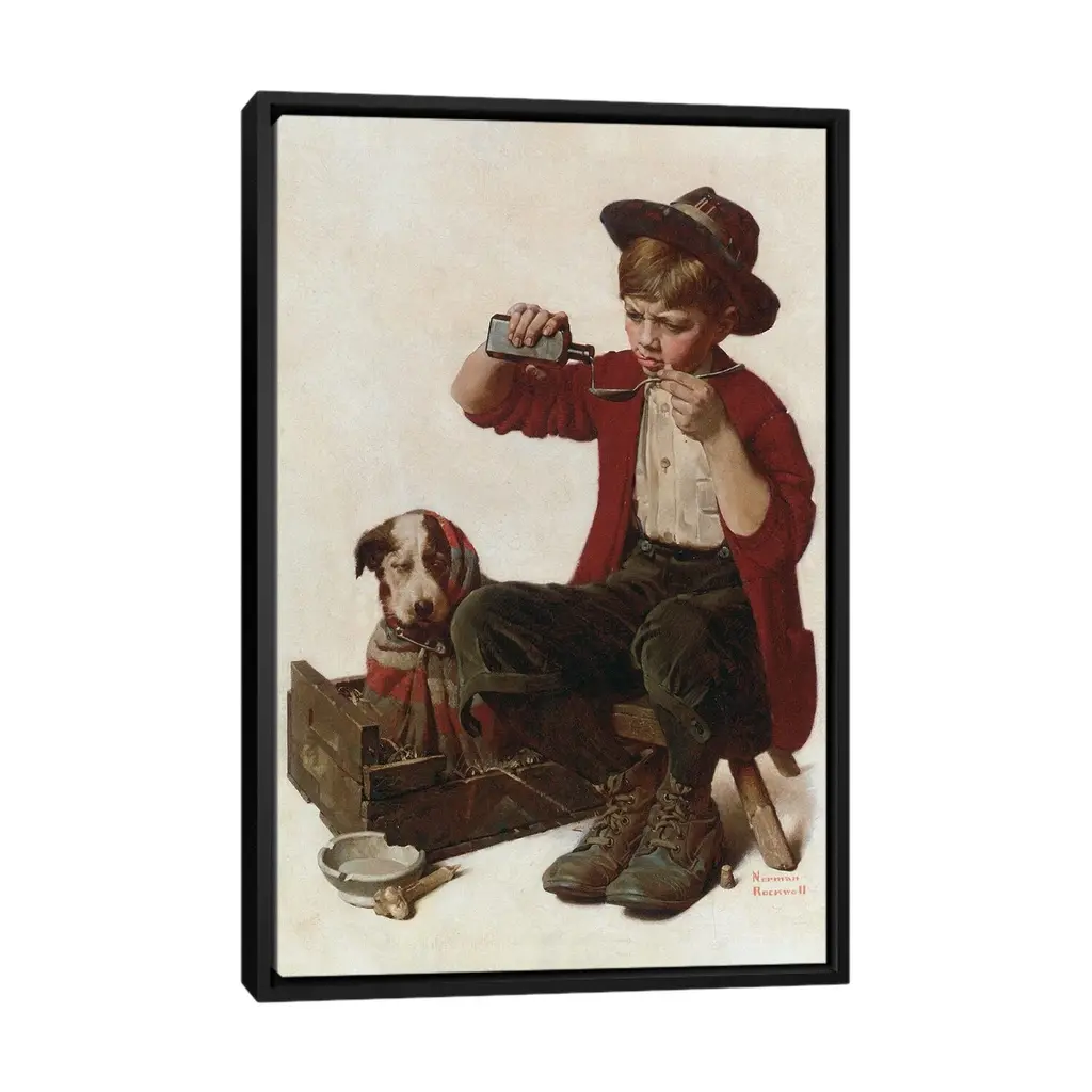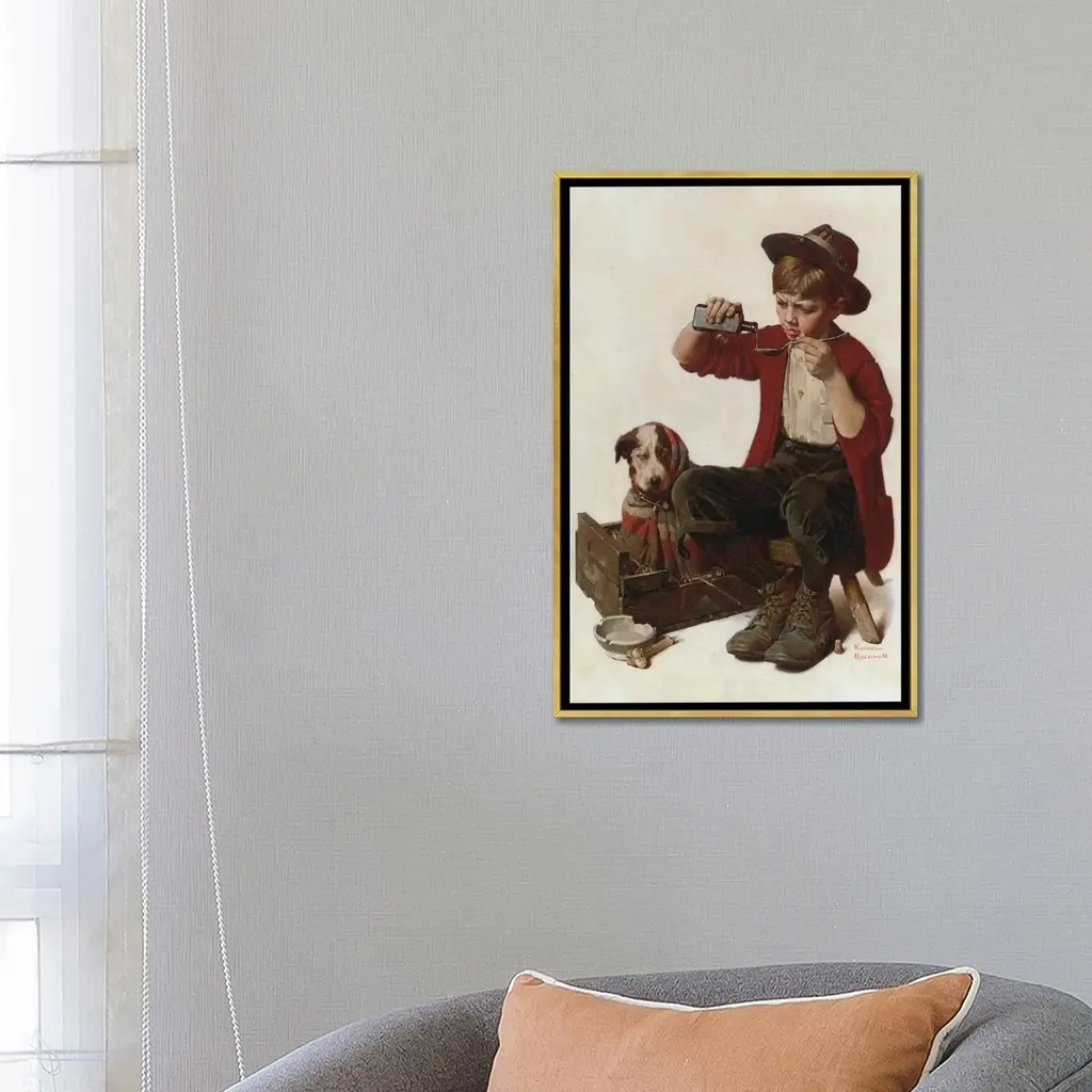 Icanvas "Sick Puppy" By Norman Rockwell Framed - Gold - 26x18