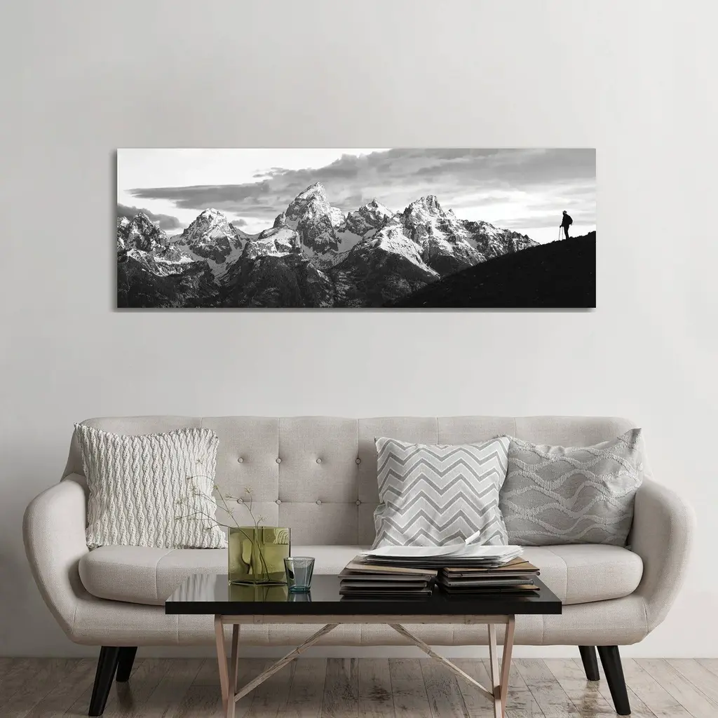 Icanvas "Silhouette Of A Hiker On Schwabacher Landing, Grand Teton National Park, Wyoming" By Panoramic Images Canvas Print - 16x48x1.5