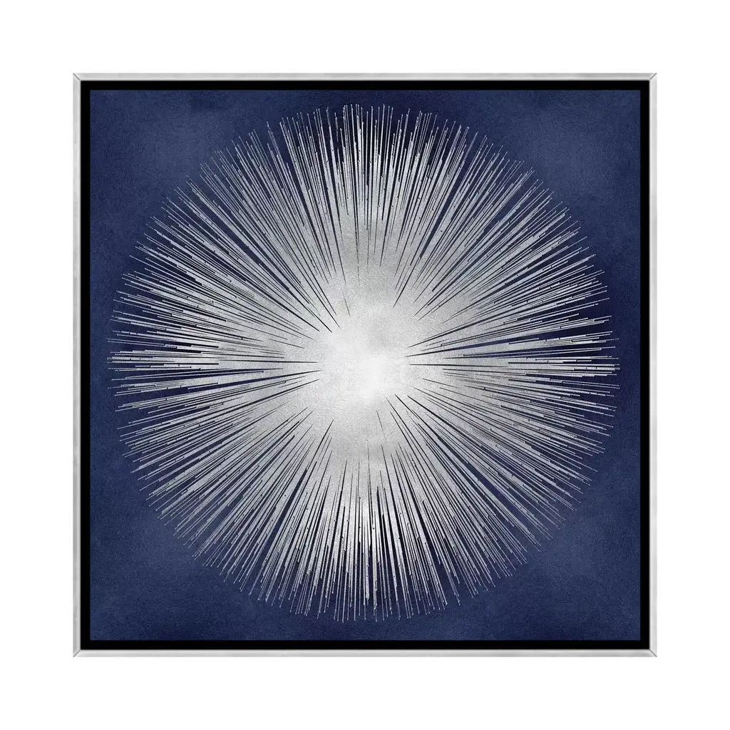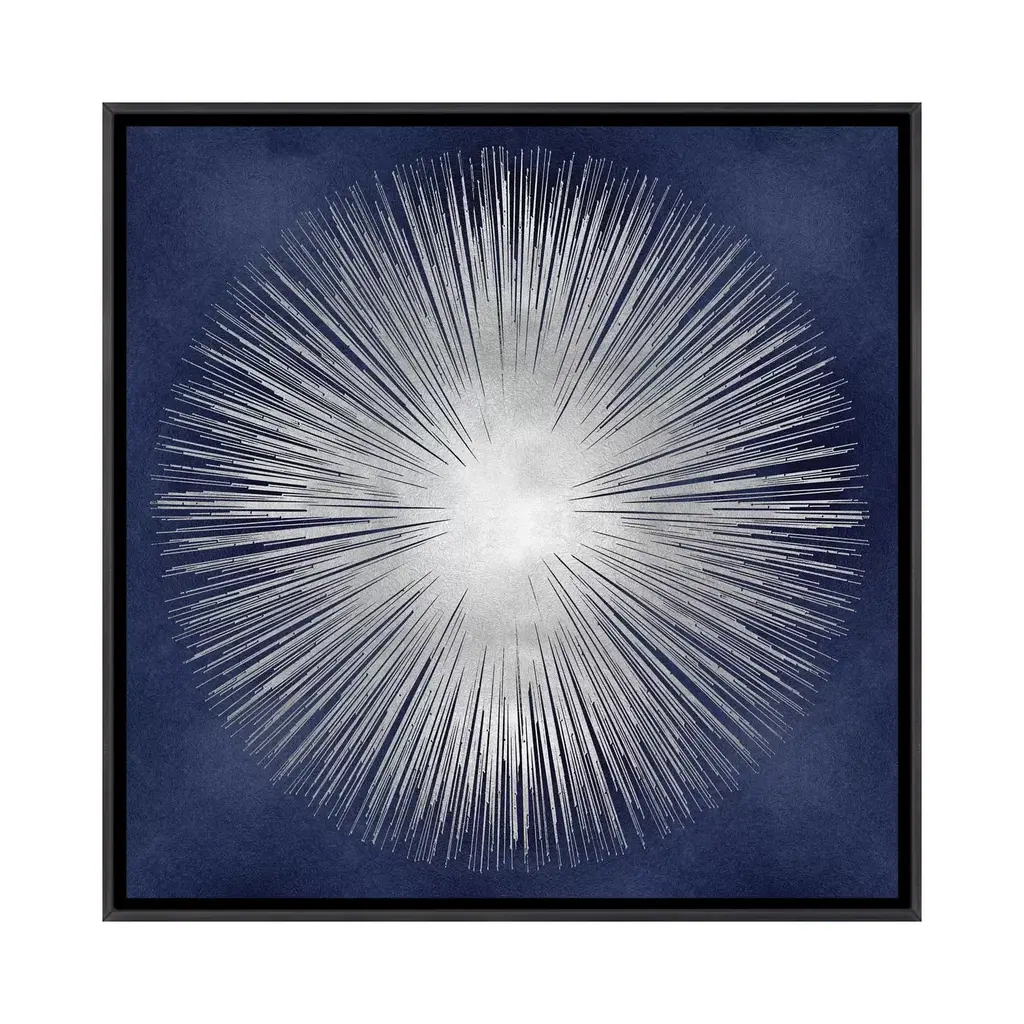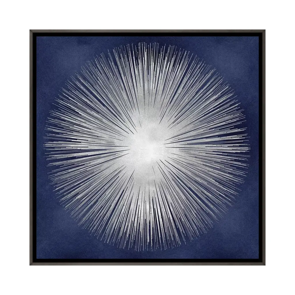 Icanvas "Silver Sunburst On Blue I" By Abby Young Framed - 18x18 - Charcoal
