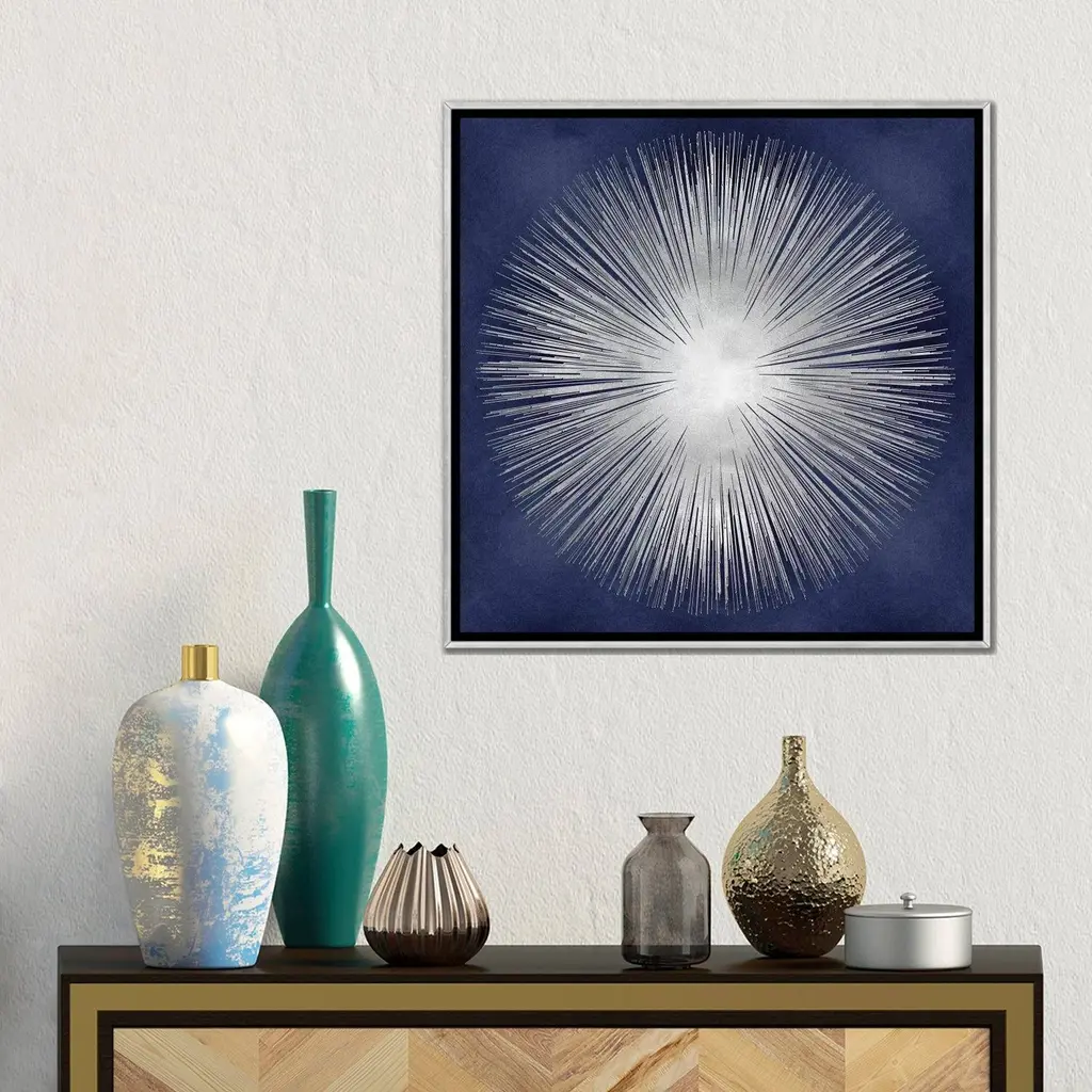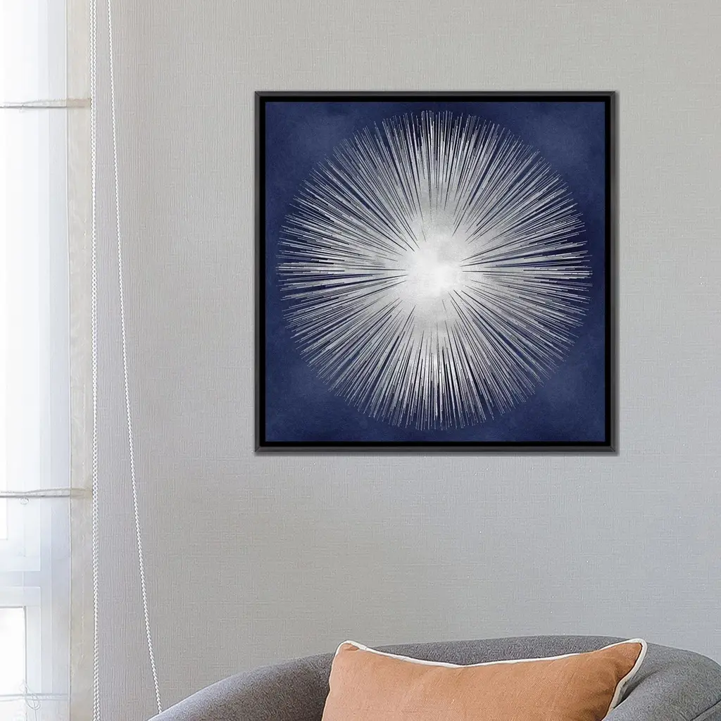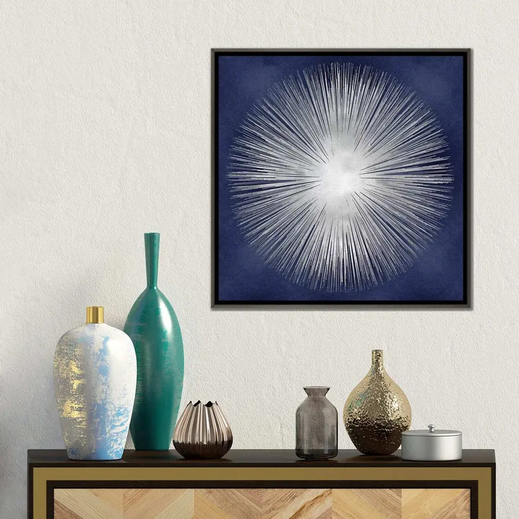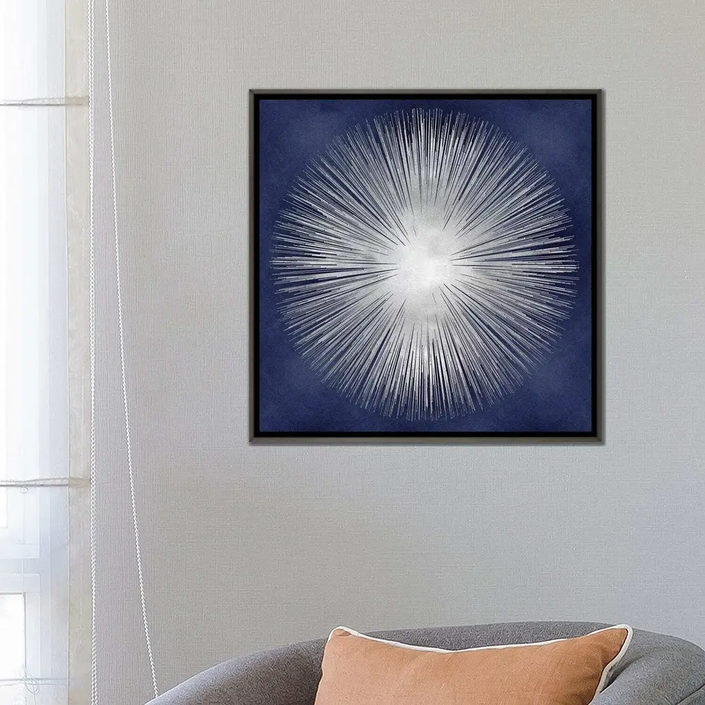 Icanvas "Silver Sunburst On Blue I" By Abby Young Framed - 18x18 - Charcoal