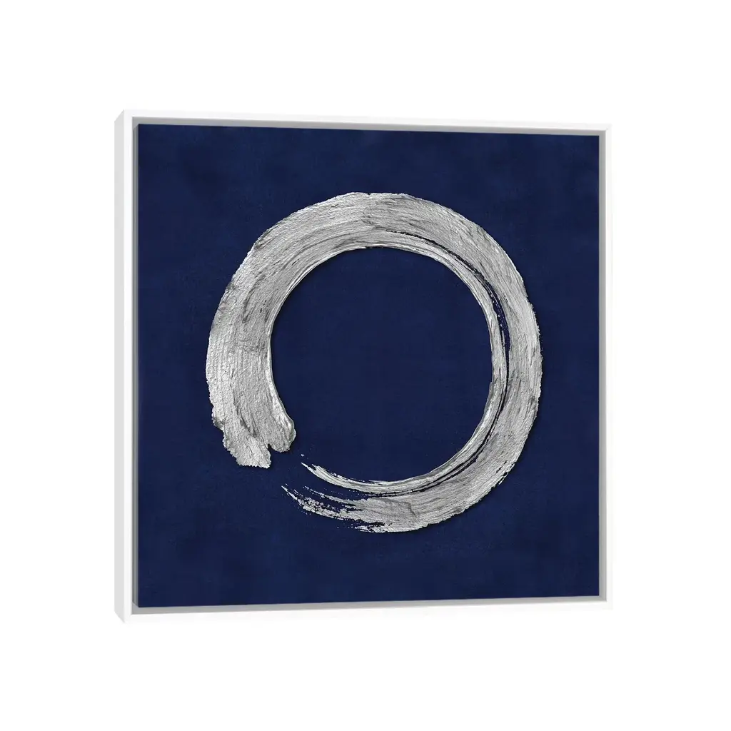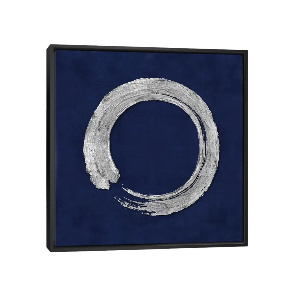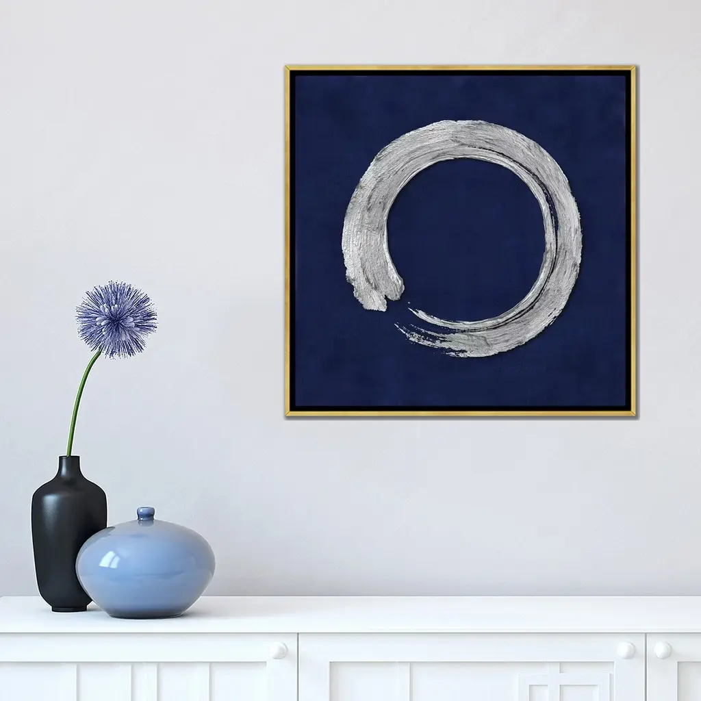 Icanvas "Silver Zen Circle On Blue I" By Ellie Roberts Framed Canvas Print - Black - 18x18