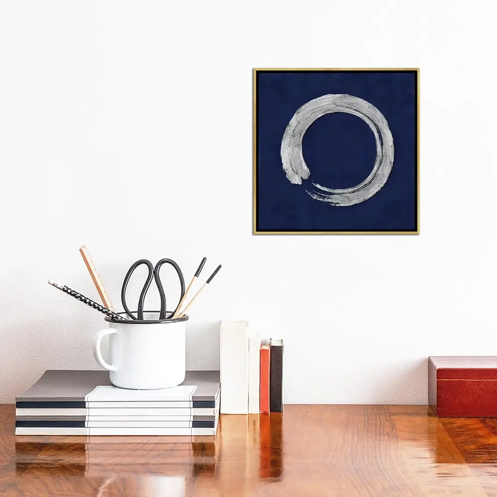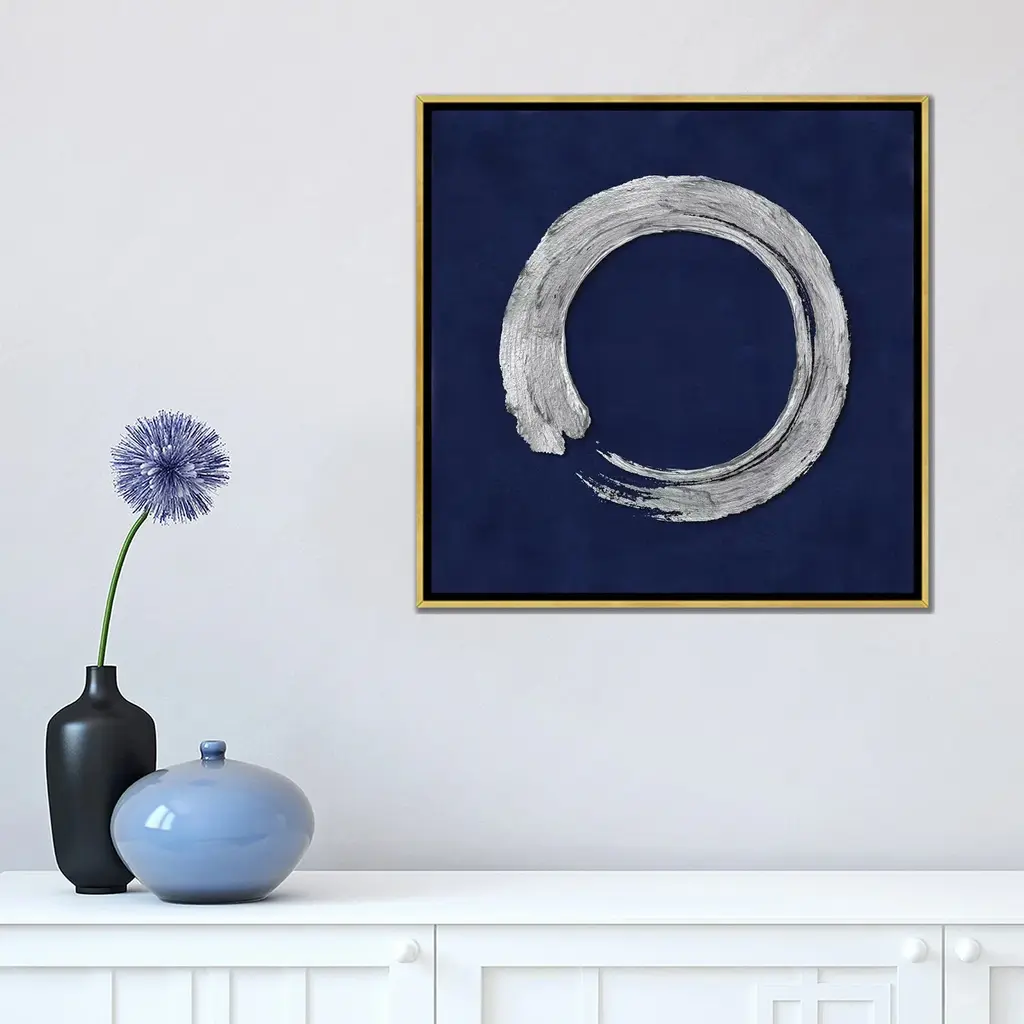 Icanvas "Silver Zen Circle On Blue I" By Ellie Roberts Framed Canvas Print - Gold - 37x37